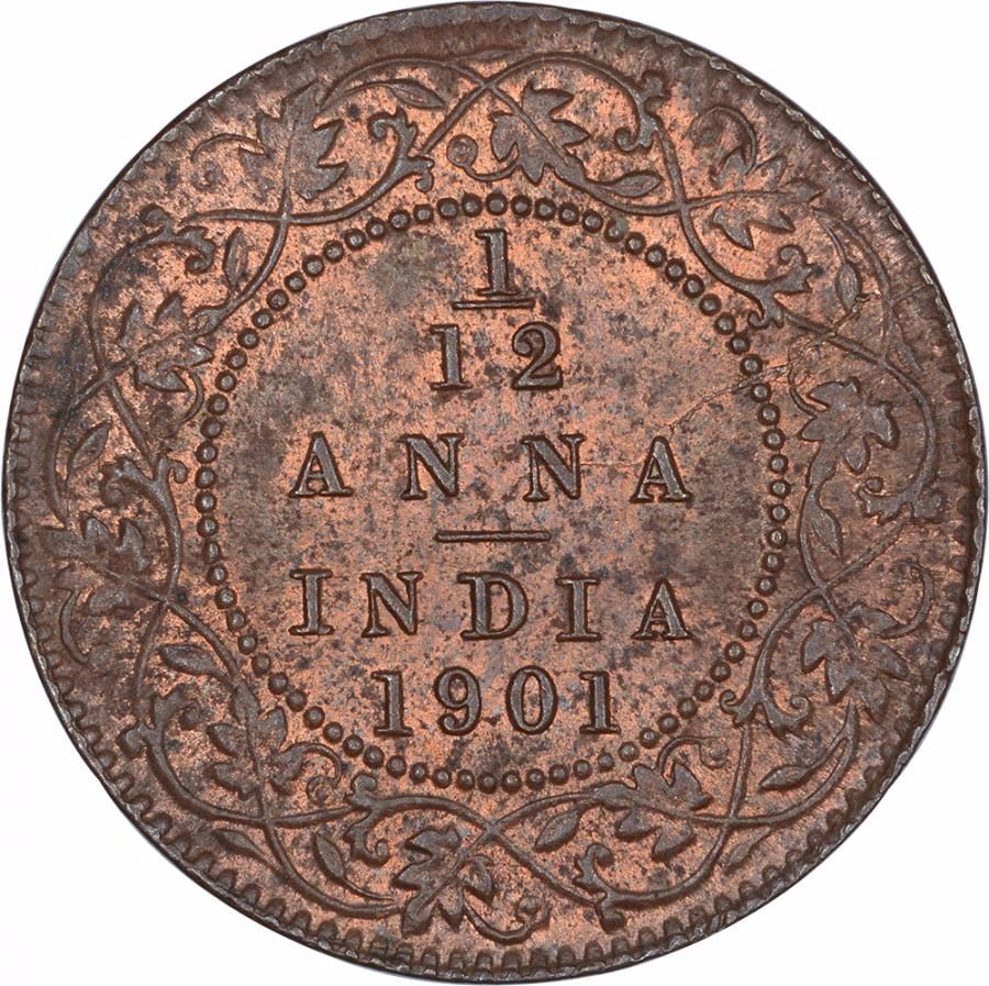 Copper One Twelfth Anna Coin of Victoria Empress of Calcutta Mint of 1901.