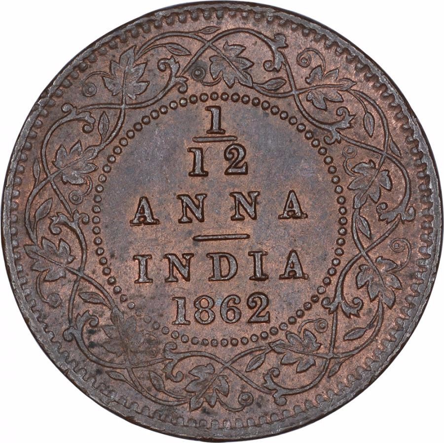 Copper One Twelfth Anna Coin of Victoria Queen of Calcutta Mint of 1862.