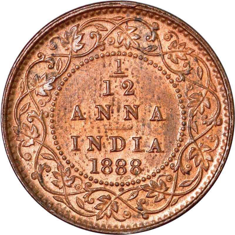 Copper One Twelfth Anna of Victoria Empress of Calcutta Mint of 1888.