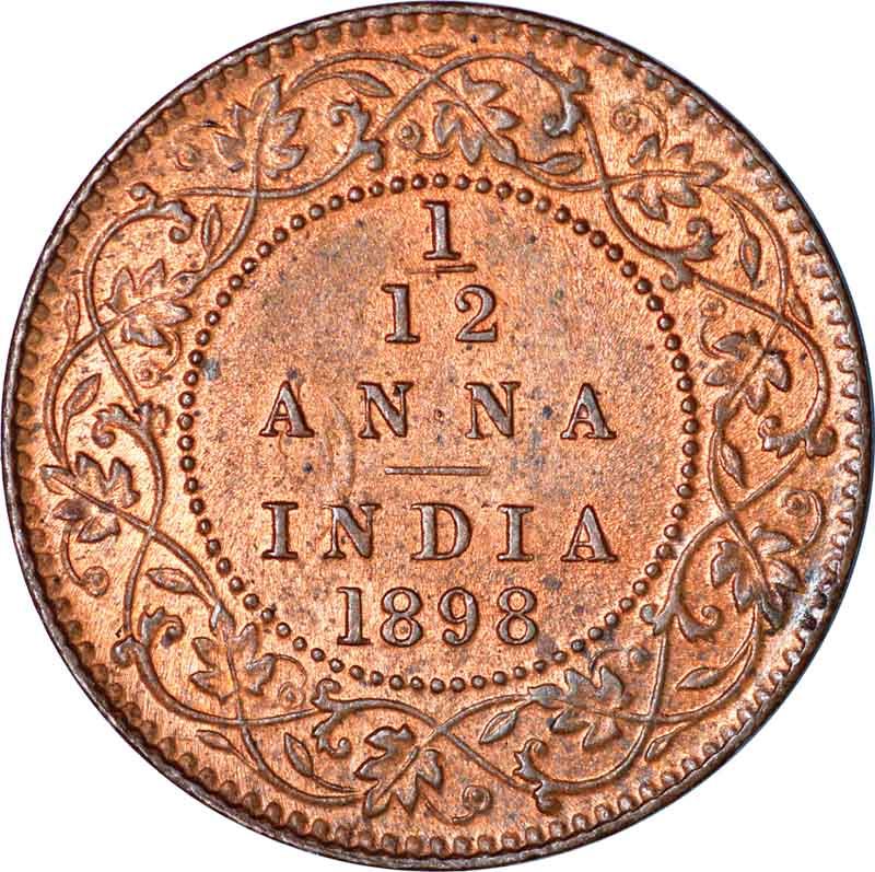 Copper One Twelfth Anna of Victoria Empress of Calcutta Mint of 1898.