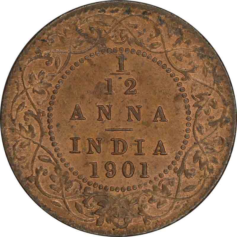Copper One Twelfth Anna of Victoria Empress of Calcutta Mint of 1901.