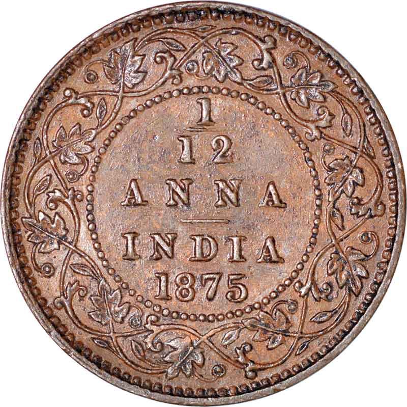 Copper One Twelfth Anna of Victoria Queen of Calcutta Mint of 1875.
