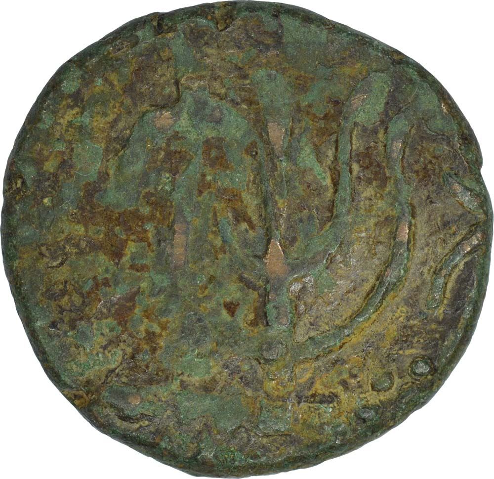 Gwalior, Anonymous Issue from the Region of Mandsore, Copper Paisa, Obv:eight petal flower mint mark, persian legend, Rev:trident in the stand, 11.80g, 24.32mm, Unlisted New Variety,very fine, Extremely Rare in complete natural condition with green patina.
