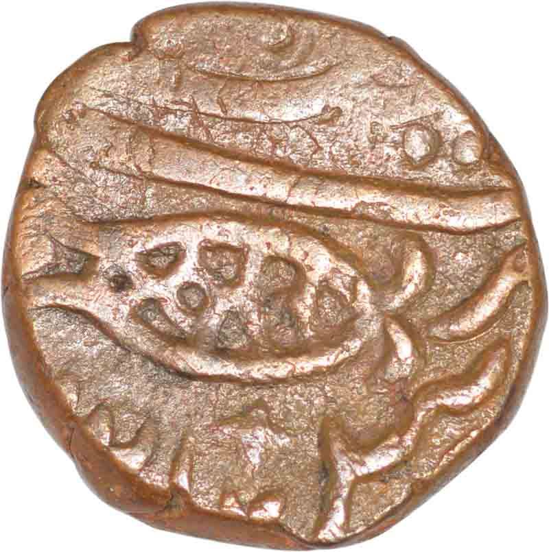 Copper Paisa of Najibabad mint of Awadh in the name of Shah Alam II.