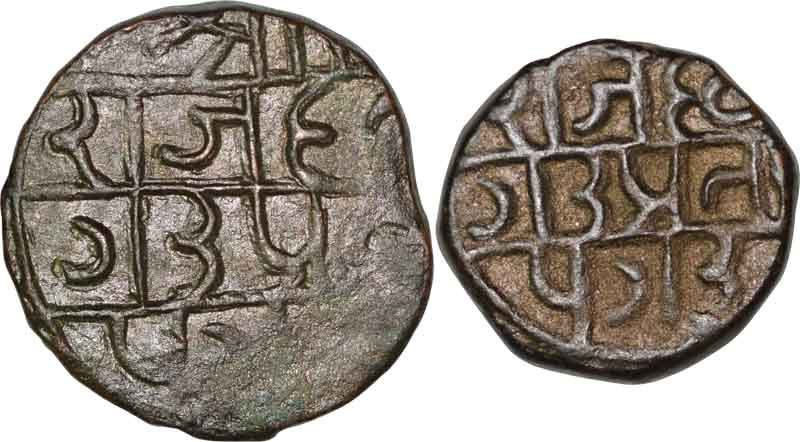 Pratapgarh, Raganath Singh, Copper Paisa(2), Set of Two different varities, large and small flan, (KM# 40),8.1g, 7.0g, 22.71mm, 18.0mm, extremely fine.