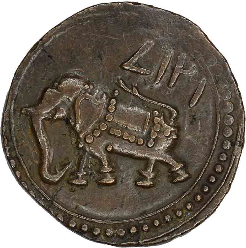 Mysore Kingdom, Tippu Sultan, Patan, Copper Paisa (Zohra), 1217 AM, Obv: elephant to left, above am year, Rev: mint name patan in persian, 11.35g, 24.90mm, about extremely fine.