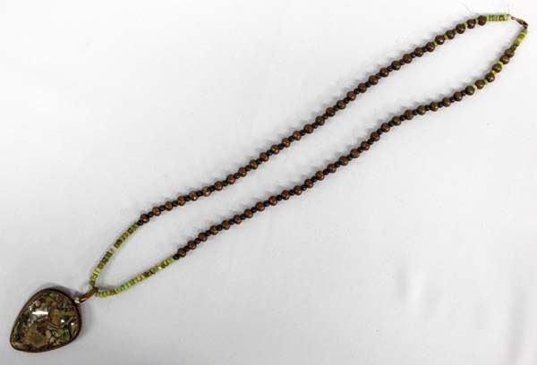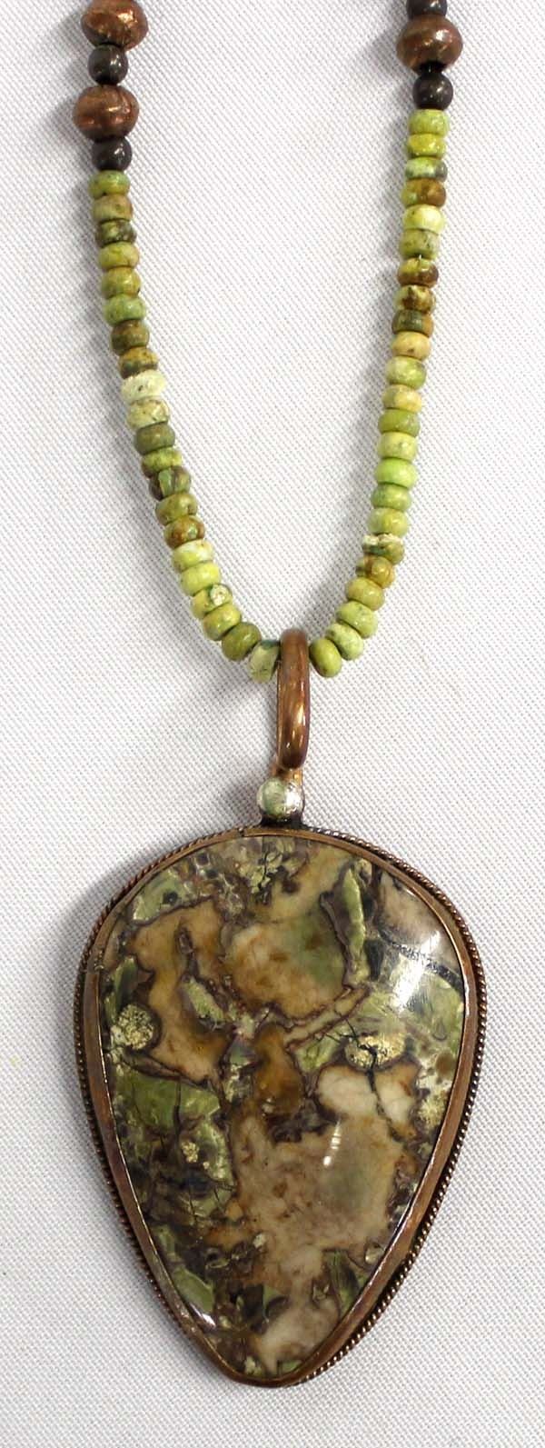 Copper and Variscite Pendant Necklace, gaspeite and copper necklace measures 32''L end to end and pendant measures 3.5'' x 2'', stamped made in Santa Fe and artist's initials DEU for Santa Fe Artist Dave Umpleby