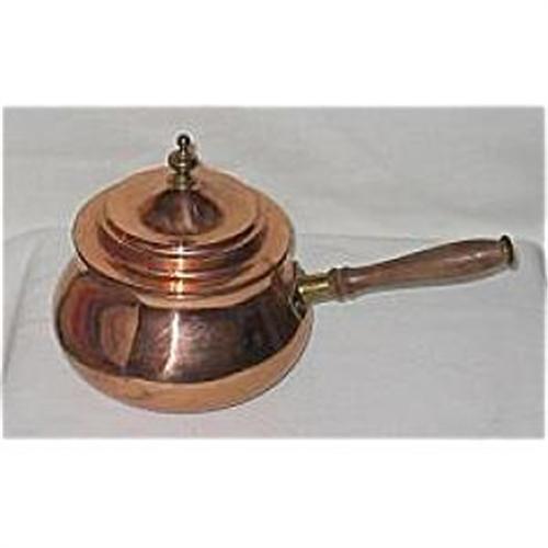This wonderfully crafted copper pot with finial top and hard wood handle is marked Made in Italy. In exceptional condition with minor scratching and no dings or dents. It measures 4 1/4 inches deep with out the lid, 8 inches tall with it, and the base is 6 3/4 inches round. A nice addition to any Copper Pot Collection.<BR>SH & Ins. will be quoted after orders placed. If you have any questions feel free to contact me and thank you for looking.