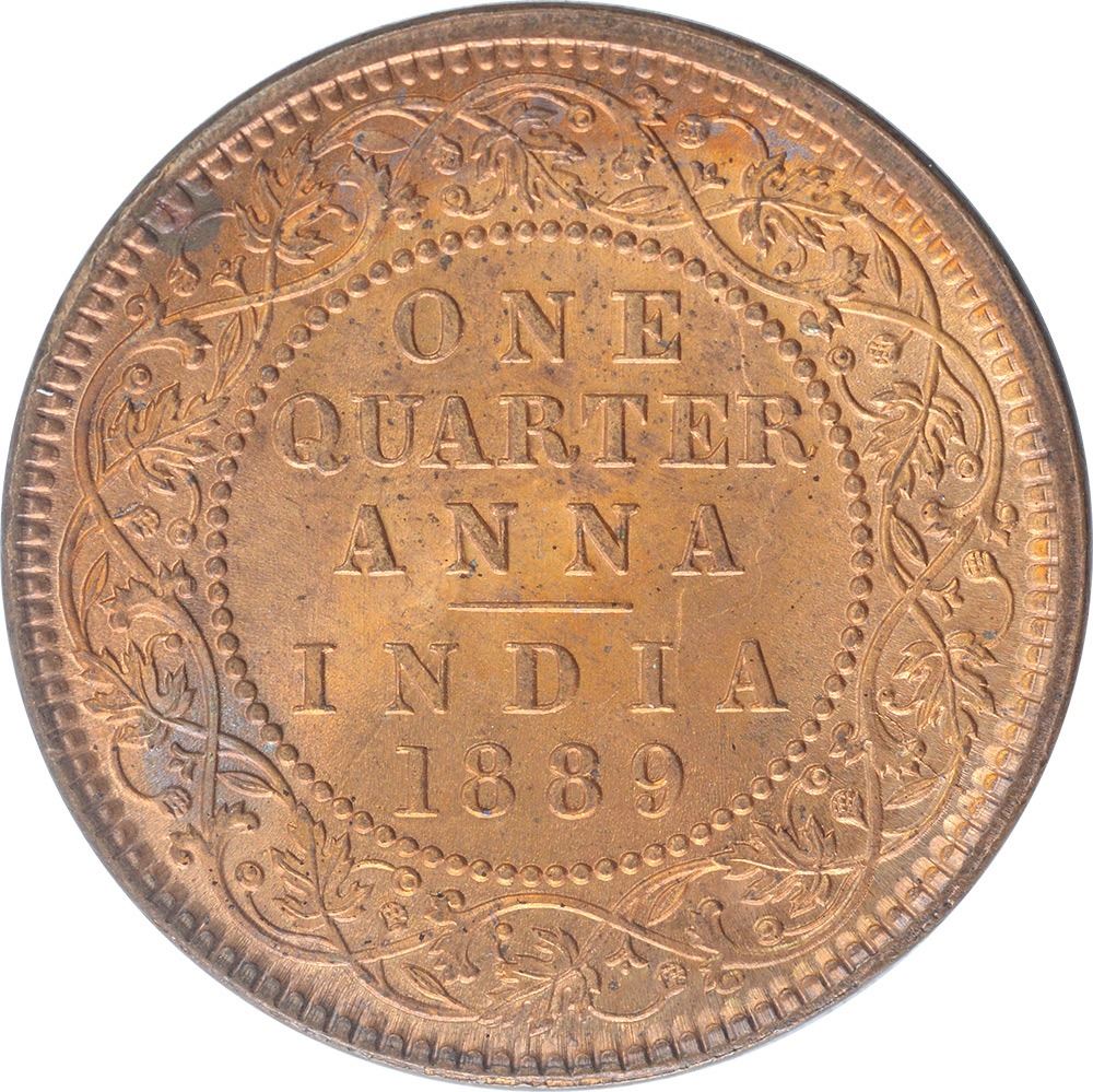 1889, Victoria Empress, Copper 1/4 Anna, Calcutta Mint, Bust/B/II, (PR # 622), Gem Red UNC.