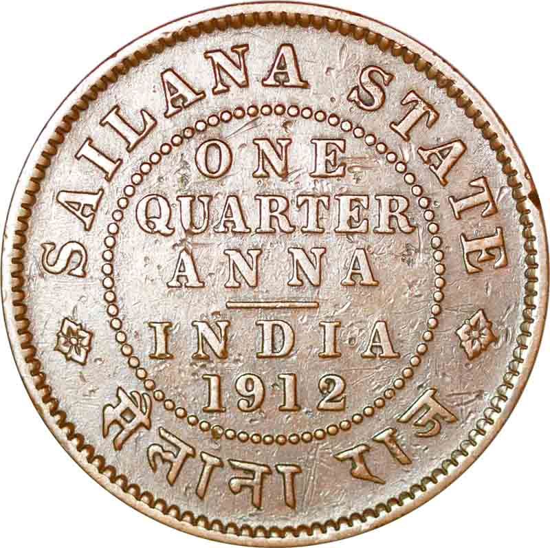 Sailana, Jaswant Singh II, King George V Issue, Copper 1/4 Anna, 1912,