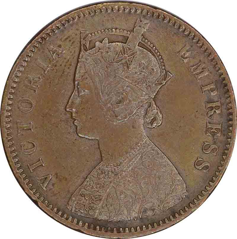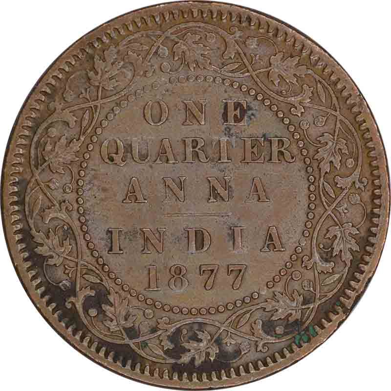 Copper Quarter Anna of Victoria Empress of Calcutta Mint of 1877.