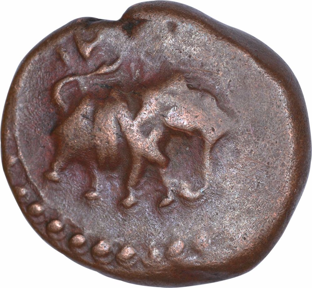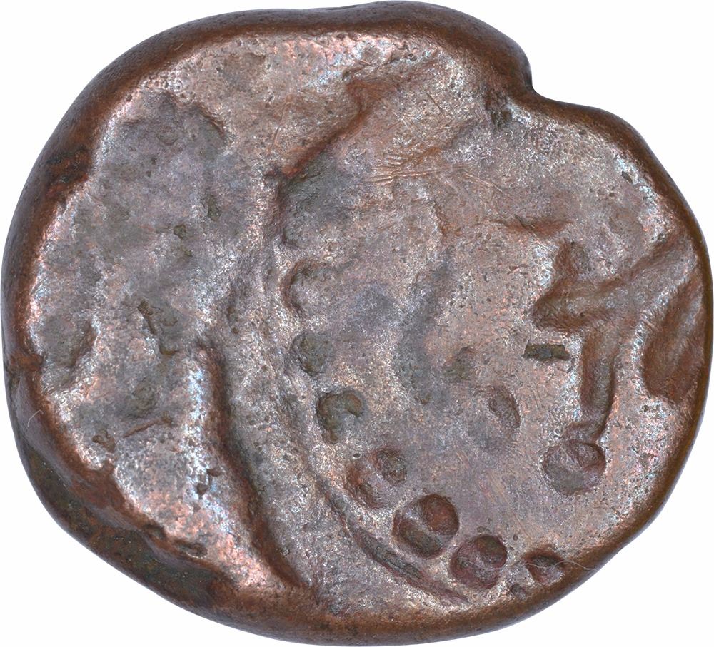 Mysore Kingdom, Tipu Sultan,Error Copper 1/4 Paisa (Akhtar),Brockage error,Obv:elephant walking to right, with above am year, Rev: mint name error, 2.8g, 13.05mm, about very fine, Rare.