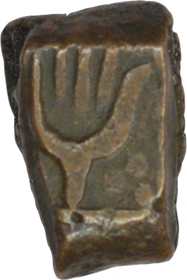 Hyderabad feudatory-Basmatnagar, Basmatnagar Mint, Copper 1/4 Paisa, Obv:palm (hand), Rev:uniface, Elongated bar Type, 3.22g, 8.48 x 13.24mm, extremely fine, Rare.