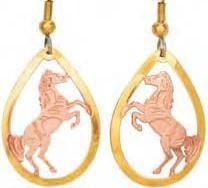 Copper Reflec tions - Hand Crafted by Designer "Tony" Gold Plate/ Copper Drop Earrings "REARING HORSE" Hypo Allergenic, Protected w/ Clear Lacquer Finish