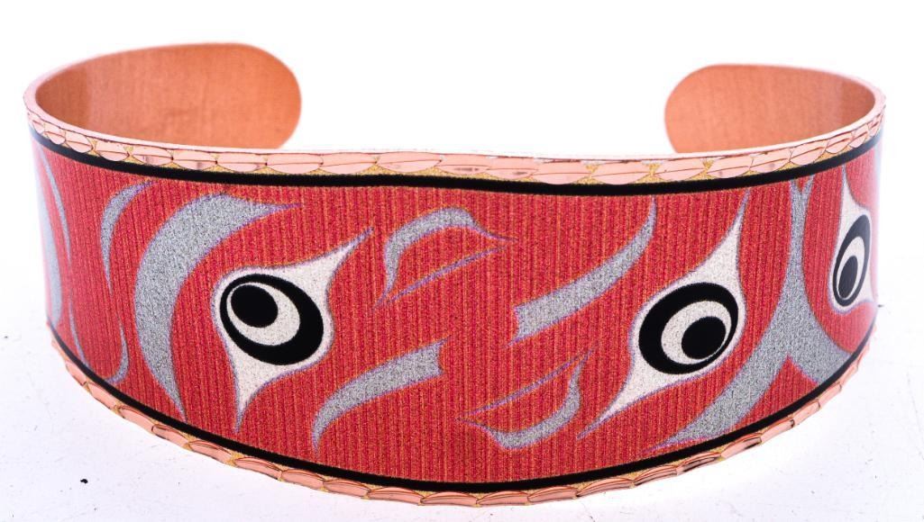 Copper Reflections - Bangle Cuff Bracelet, Silver Plated & Diamond Cut Designs on Copper. Adjustable to wrist. Artisian Design