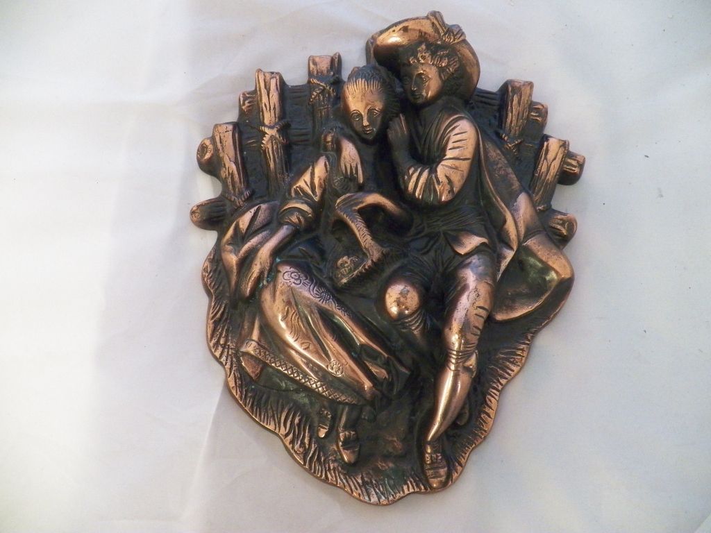Copper Relief Plaque Colonial Man Holding Woman 10" wide x 12" Tall
