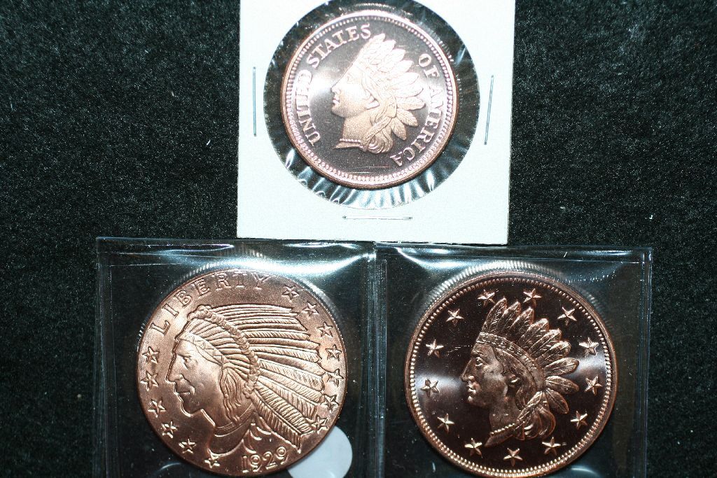 Copper Round; .999 Fine Copper 1 Oz.; Lot of 2 & Copper Round; .999 Fine Copper 1/2 Oz.; Total Lot of 3
