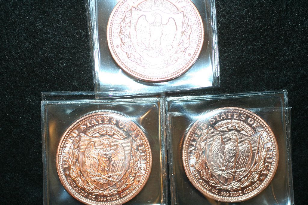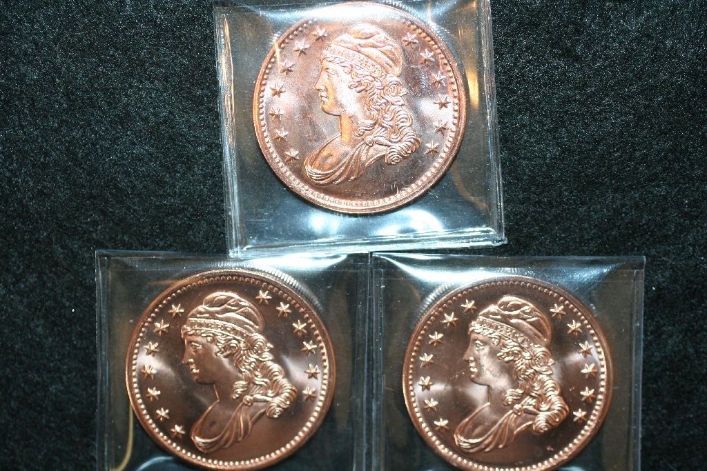 Copper Round; .999 Fine Copper 1 Oz.; Lot of 3; "Liberty Bust"