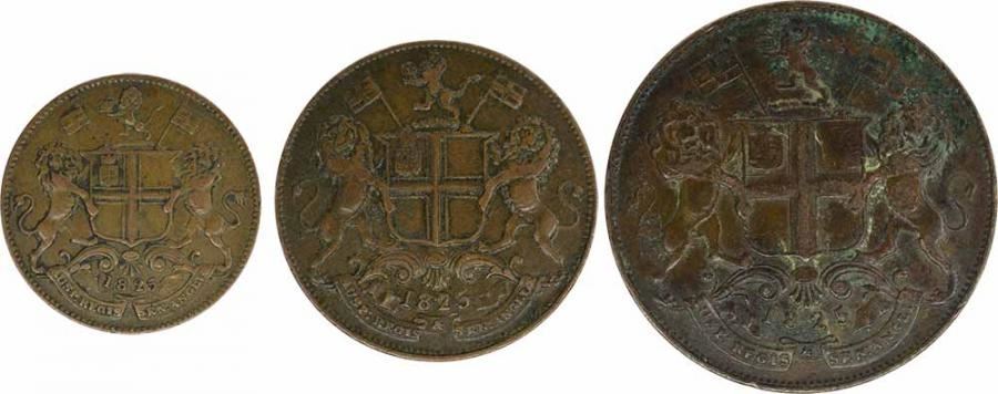 Copper Set of Three Coins of Madras Presidency of differerent denominations.