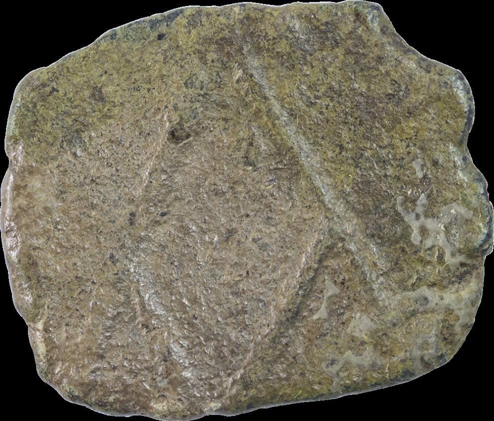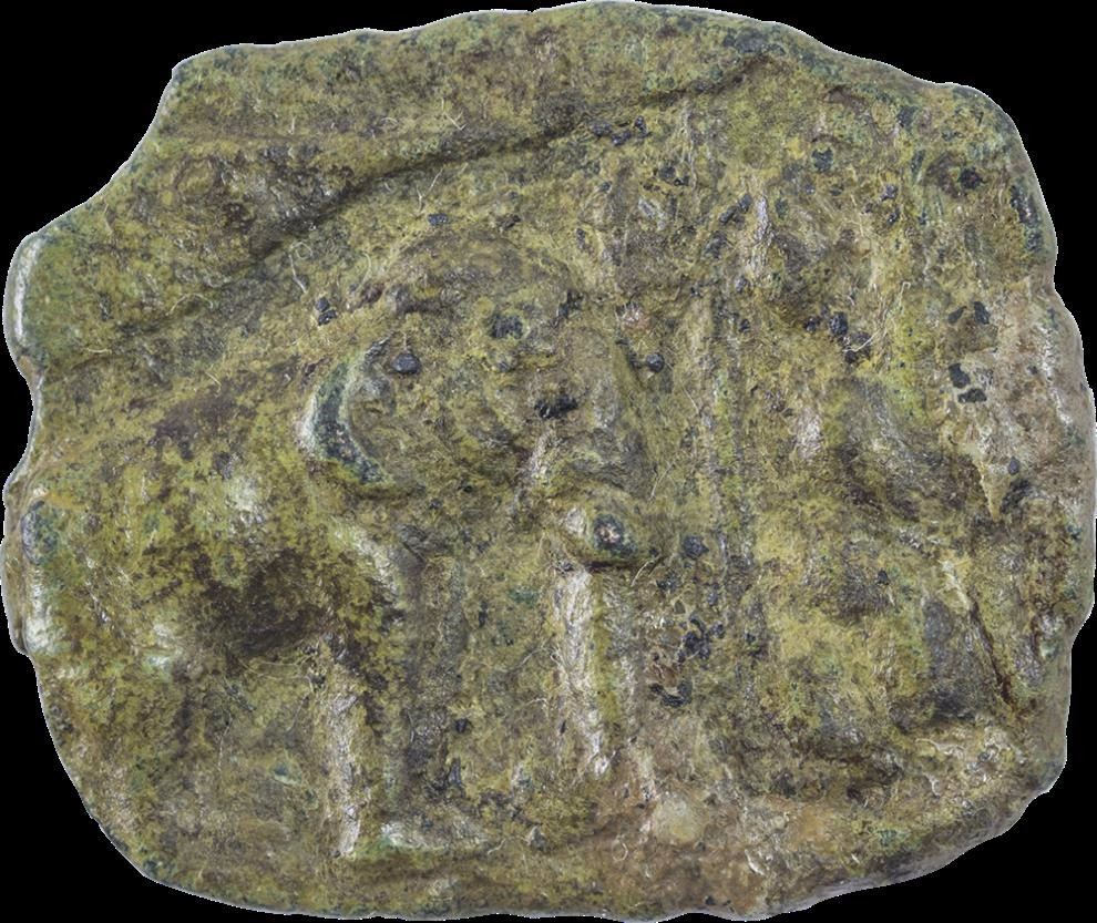Sangam Pandyas, Copper Squre Unit, Obv: elephant facing to right with tree in railing,Rev: stylised fish,4.63g,20.20 x 24.01mm, about very fine.