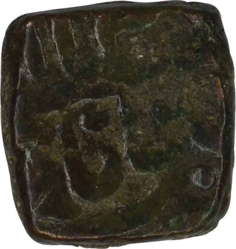 Akbar, Salimabad Ajmer, Copper Square Falus, 4X RY, Obv: allahu akbar, Rev:ilahi year at the top and zarb salimabad at