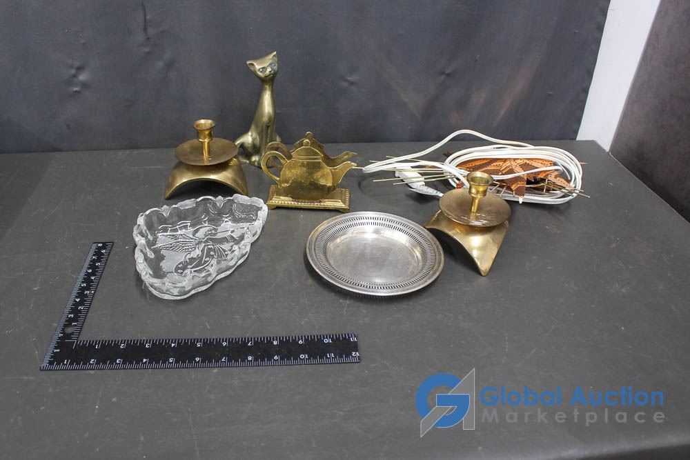 Copper Star Light (working), Brass Items, Crystal Dish and Wine Bottle Coaster