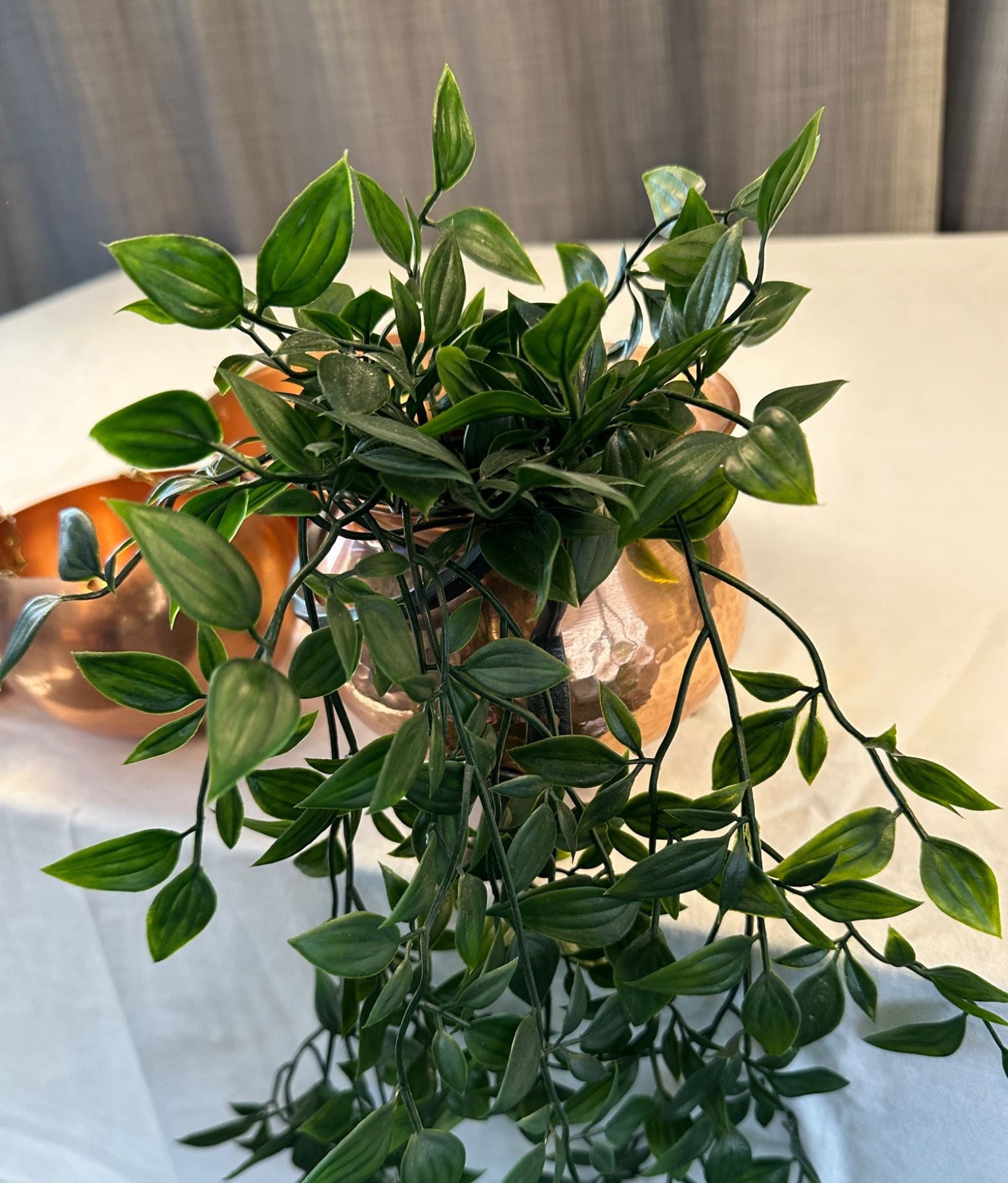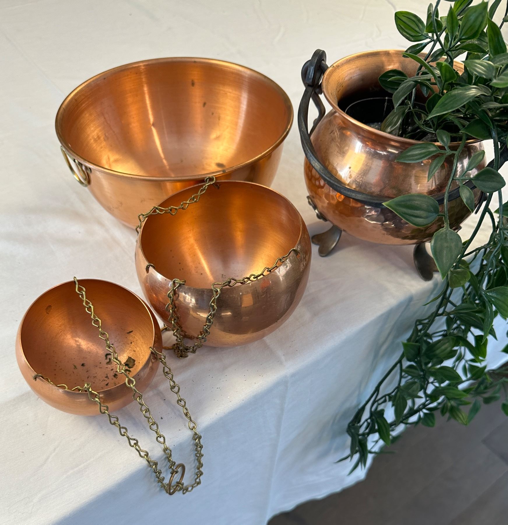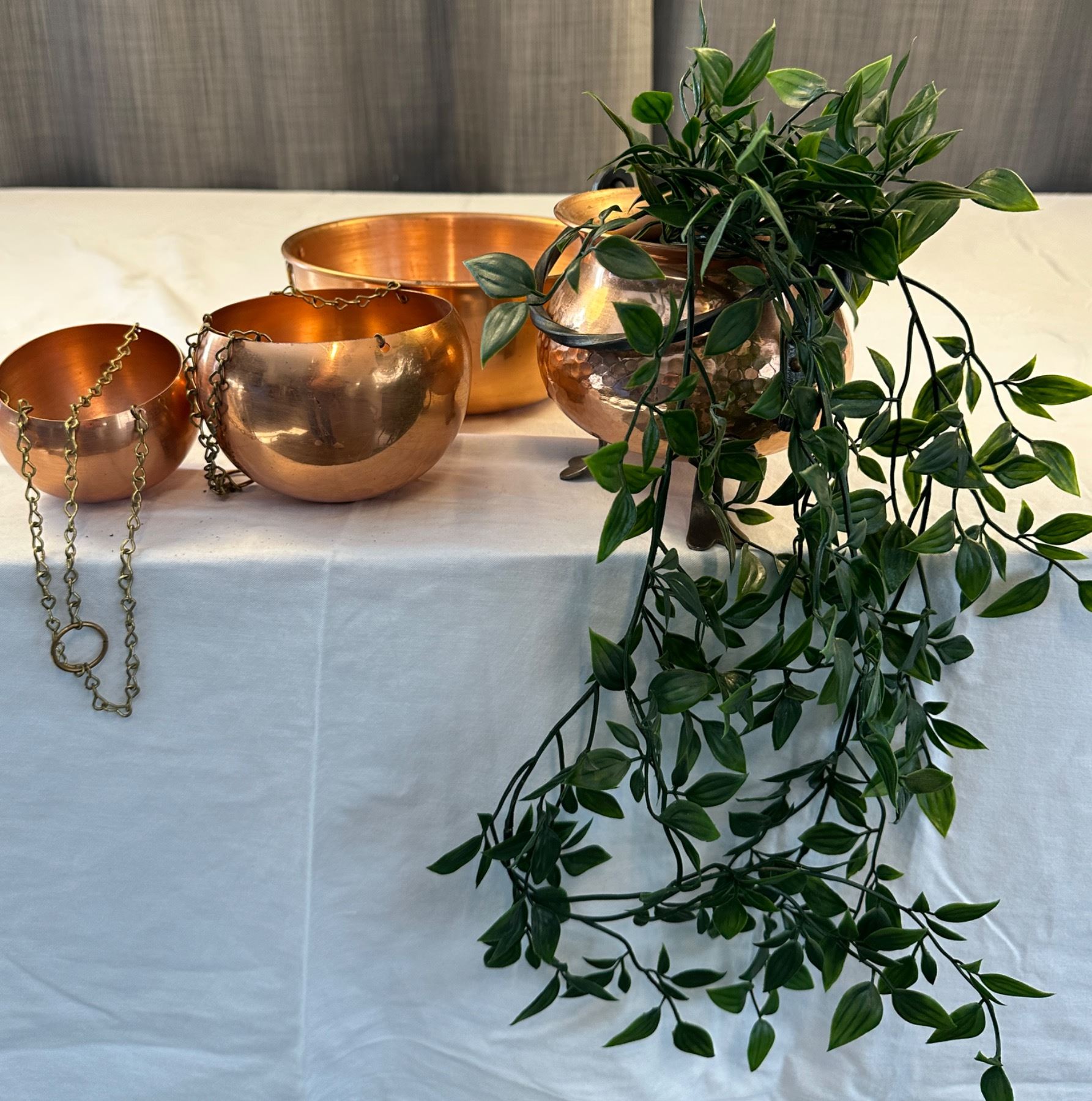 2 Hanging planters are 3.5" tall and 2.5" tall - with plant 9" tall - bowl is 3.5" tall