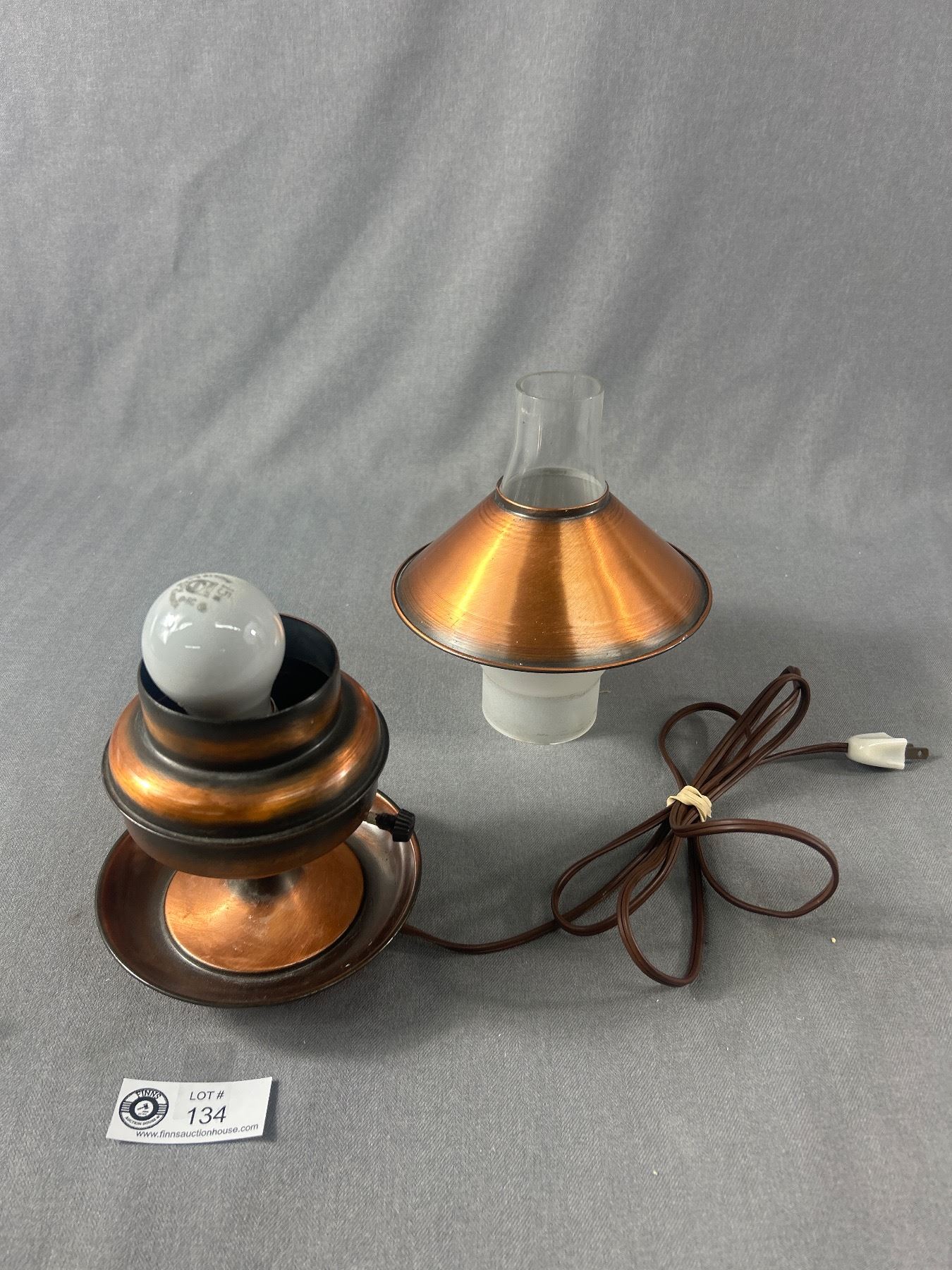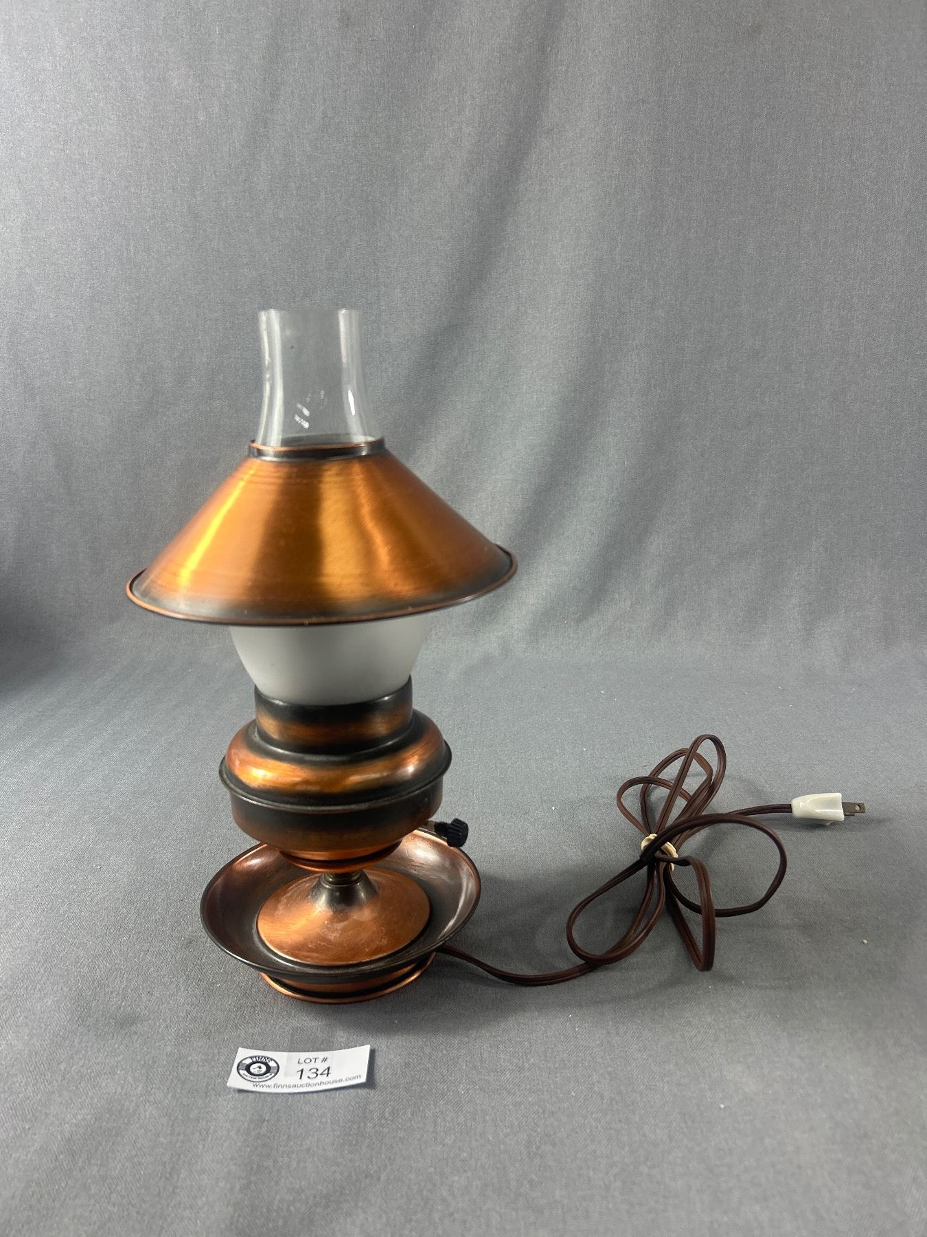 Copper Table Lamp w/ Glass Chimney - 12" Tall