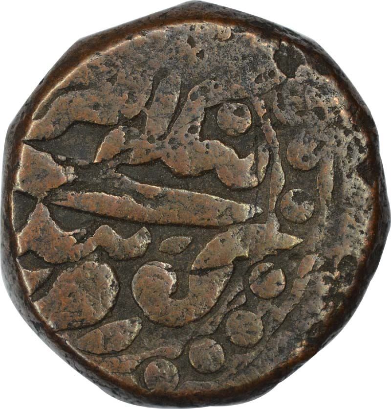 Akbar, Gobindpur, Copper Tanka, Obv: inscription in border of dots, Rev: border of dots,41.30g,26.48mm, about very fine.