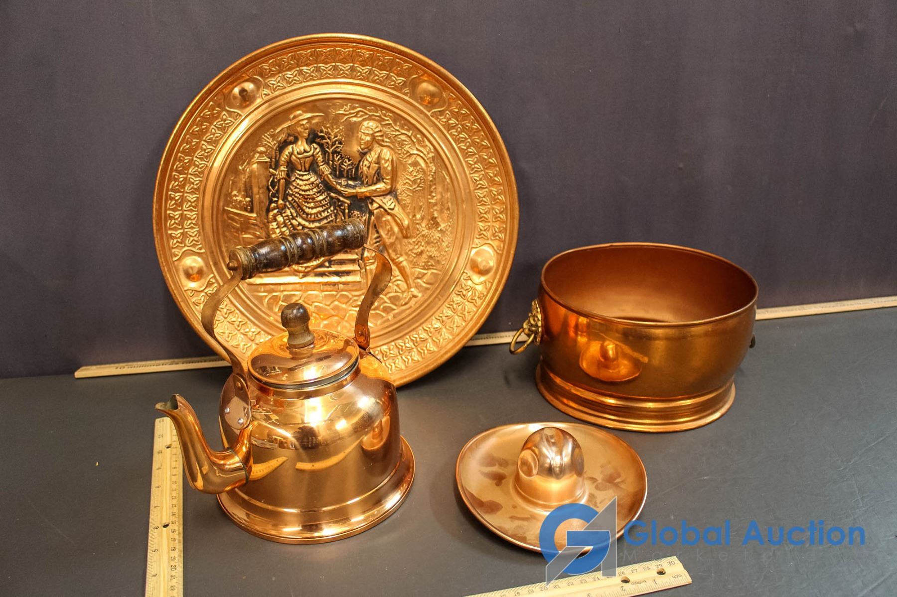 Copper Tea Kettle, Decorative Hanging Plate & Other