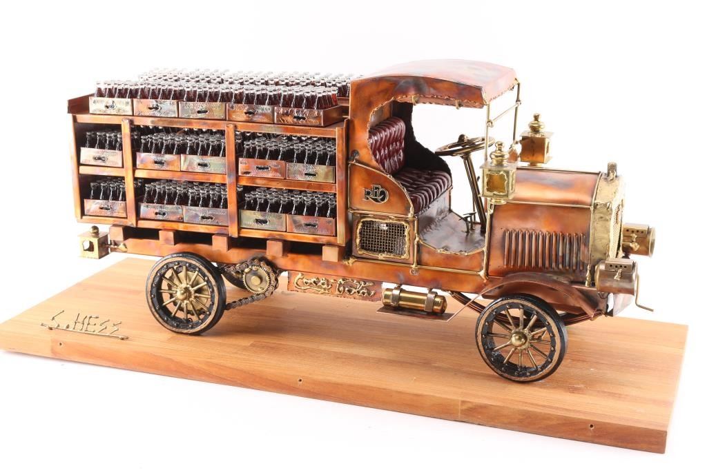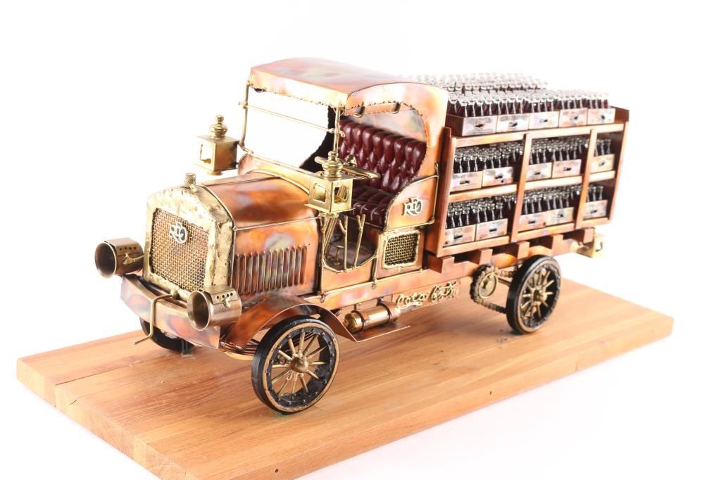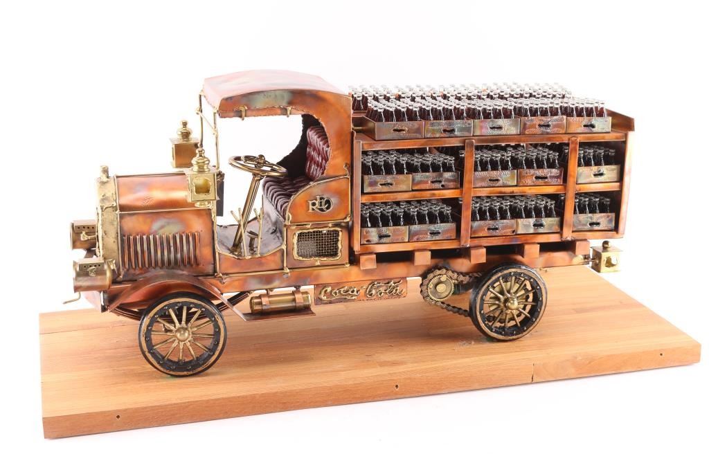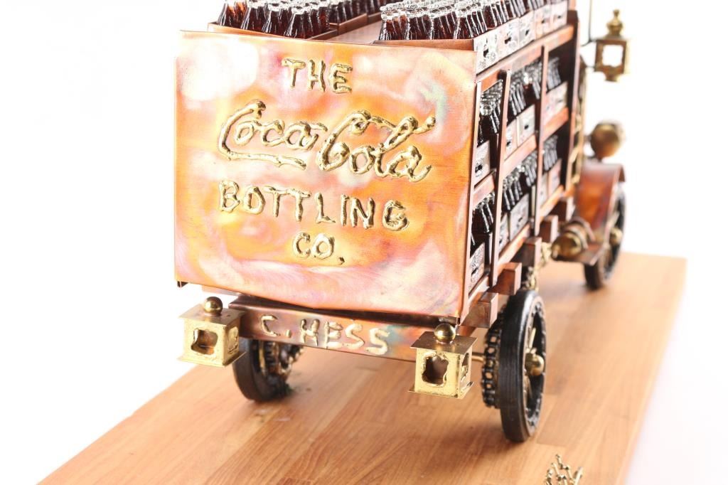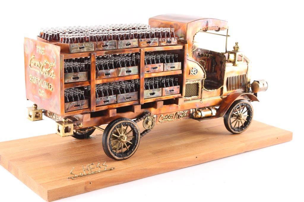 Copper Coca-Cola REO delivery truck by C. Hess in display. 12"H x 24"W x 10"D.