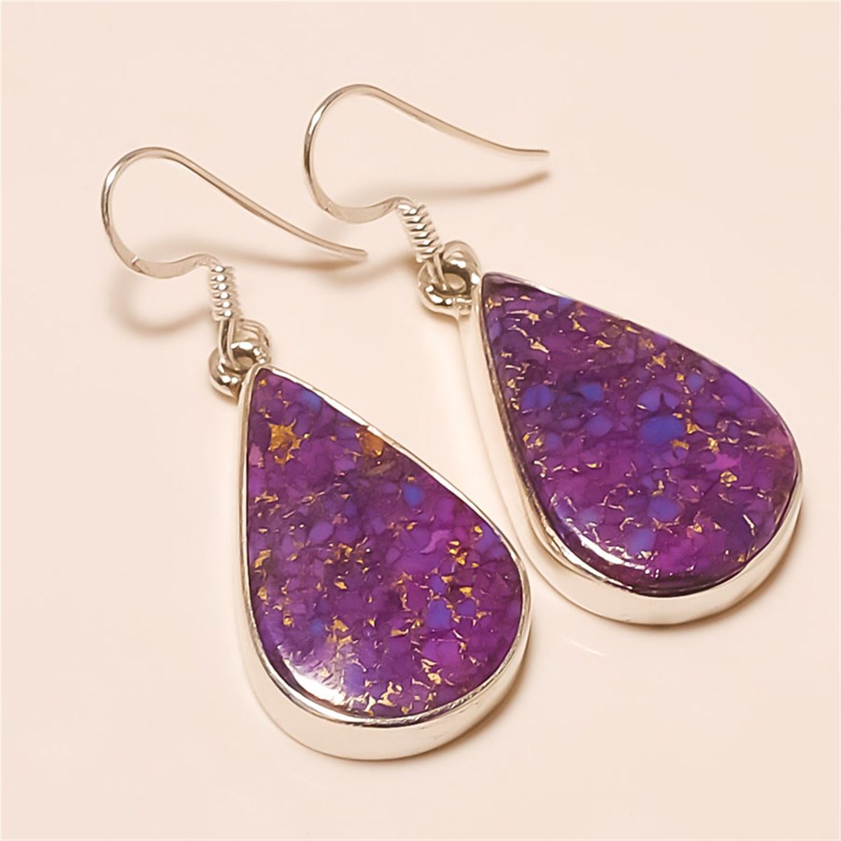 copper turquoise Earring Solid Sterling Silver Length:1 inch Weight:8 gram #E-115