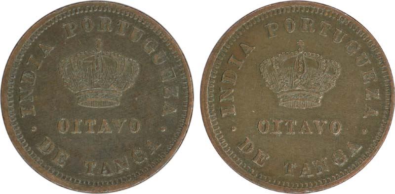 Copper Unit (2) One Eighth Tanga of India Portuguese of Ludovicous.