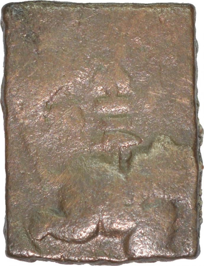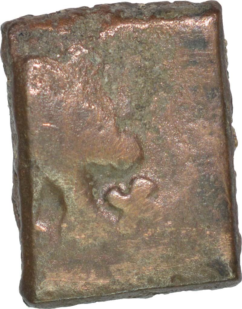 Mitra Dynasty of Khandesh (c. 100 BC), Copper Unit, Obv:elephant in seating position with upraised tail, decorative spear and nandipad above elephant, Rev:elephant standing left, swastik, 7.54g, 14.80 x 19.27mm,about very fine, Very Rare.