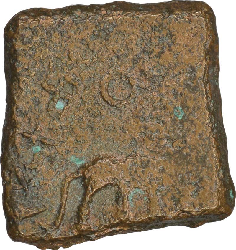 Madhya Pradesh Region, Copper Unit, Obv: bull facing right, brahmi legend “rano kochhiki(putasa satakarni), Rev:uniface, 4.90g, 20.06 X 20.90mm about very fine.