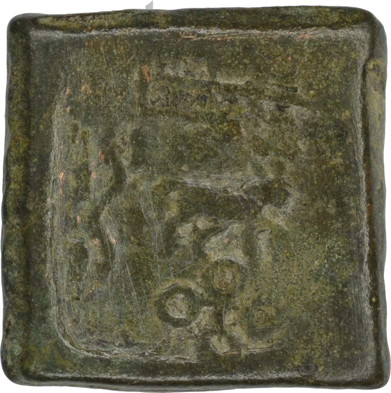 other symbols tree railing and river with fishes in field, Rev:ujjaini symbol, 6.30g, 18.40 X 18.64mm, about very fine.