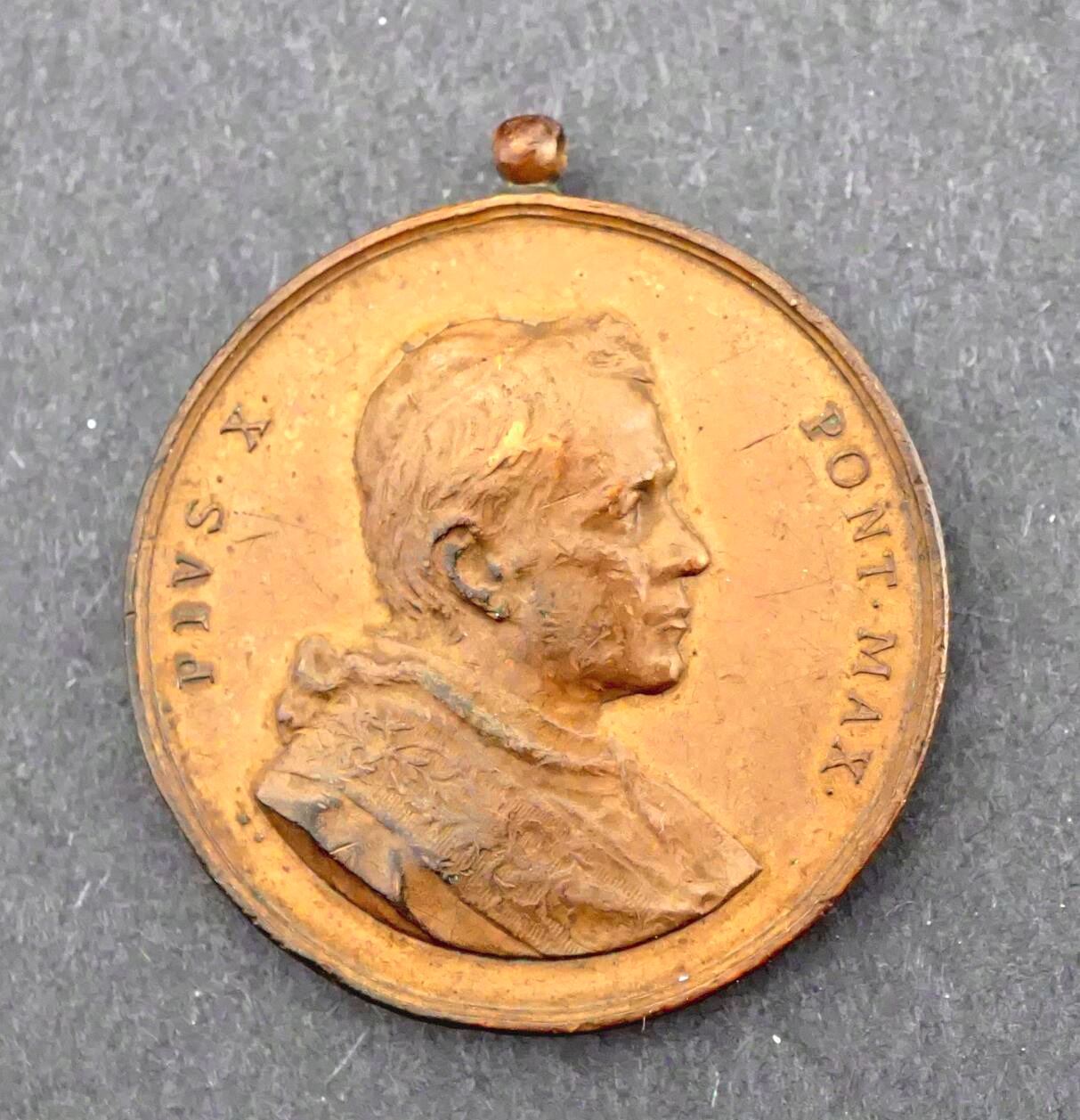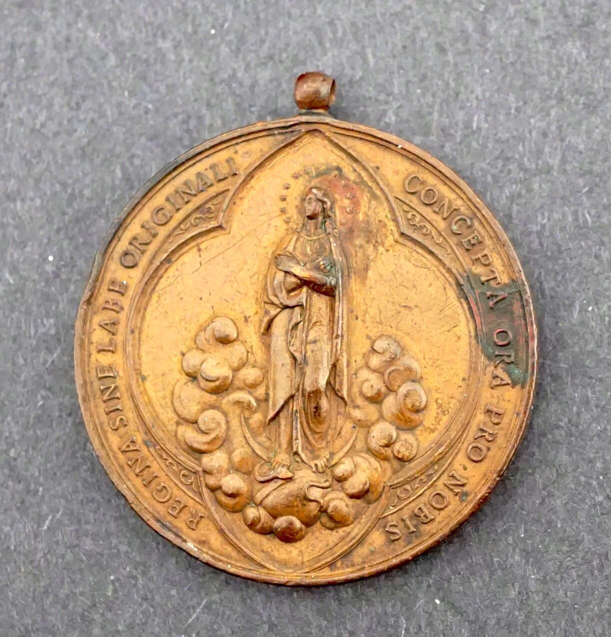 Obv: Portrait, right. Rev: Virgin Mary, nimble, standing on clouds. REGINA SINE LABE ORIGINALI CONCEPTA ORA PRO NOBIS (Queen Conceived Without Original Sin, Pray For Us), 43 mm, 39.3 grams. Original loop for suspension.