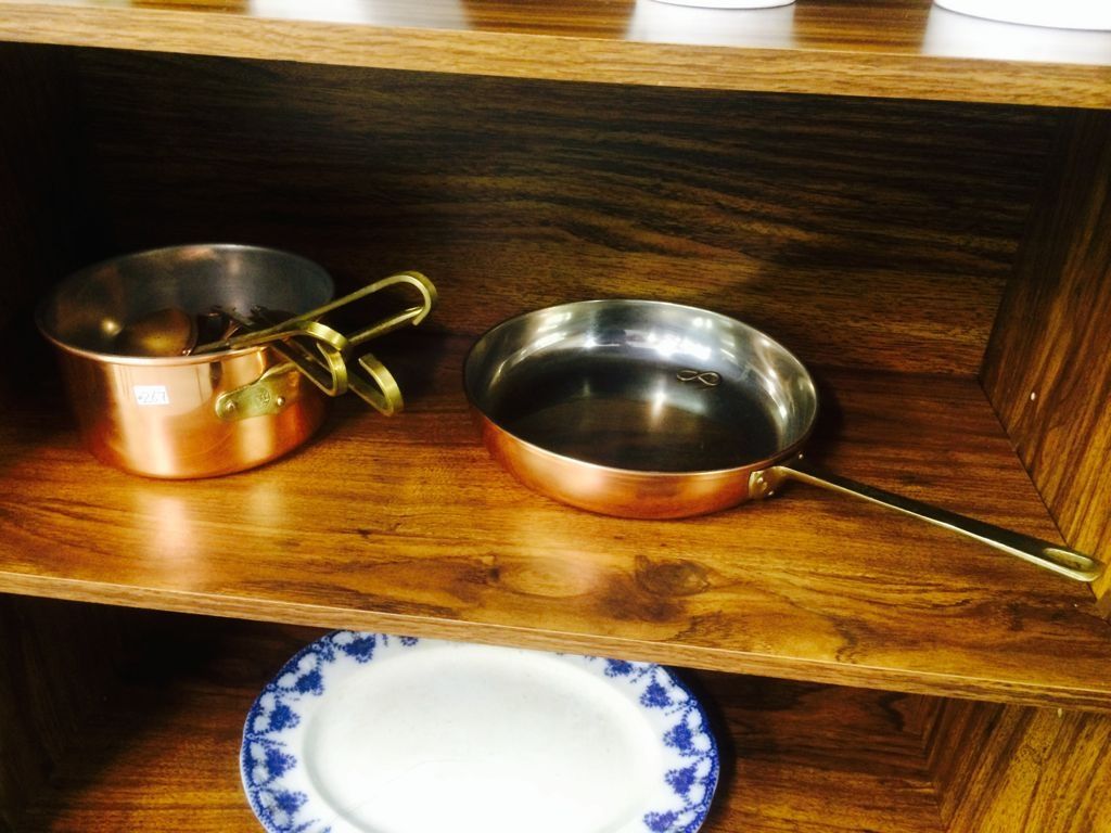 Copper and Brass Fry Pan and Pot With Utensils