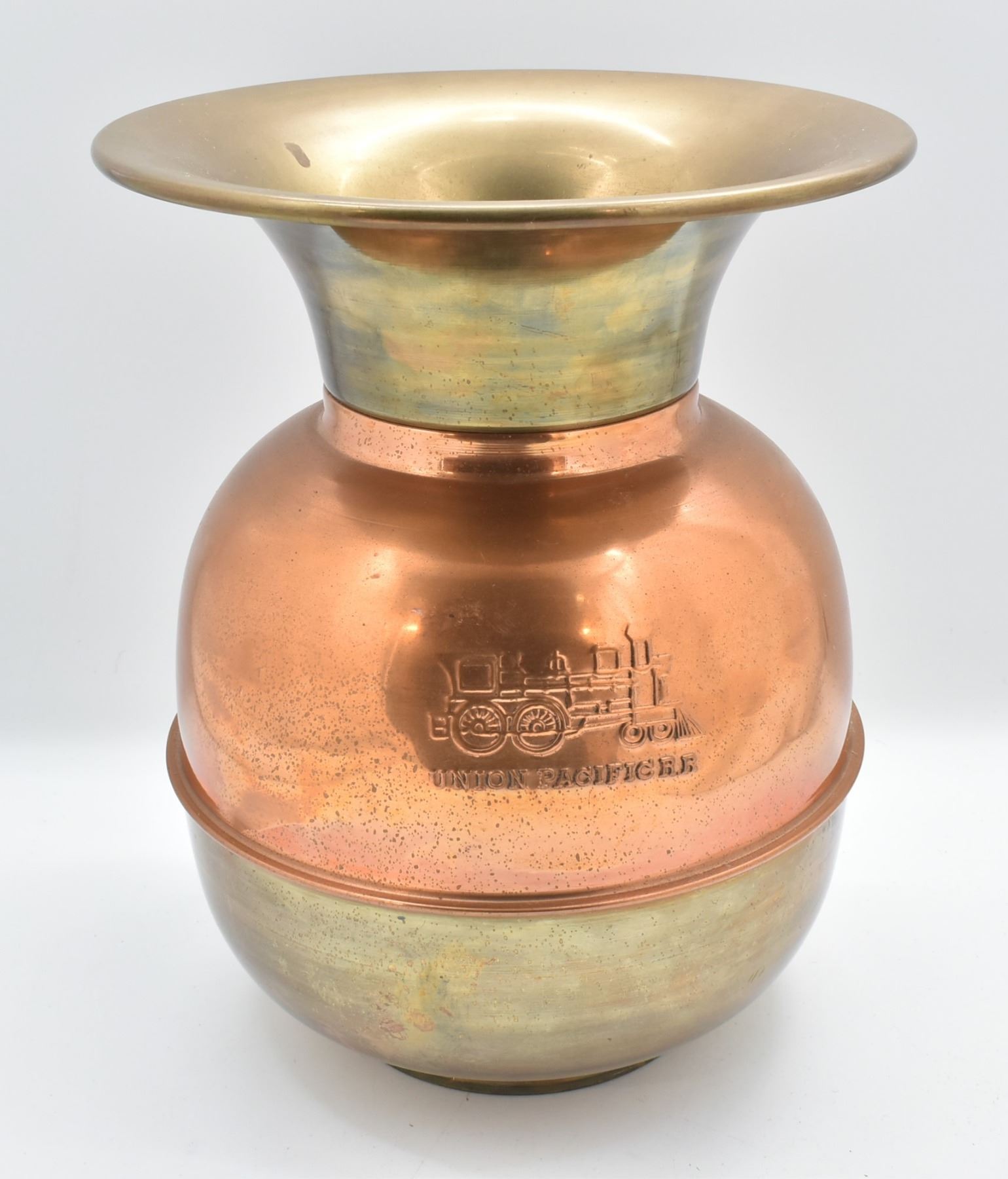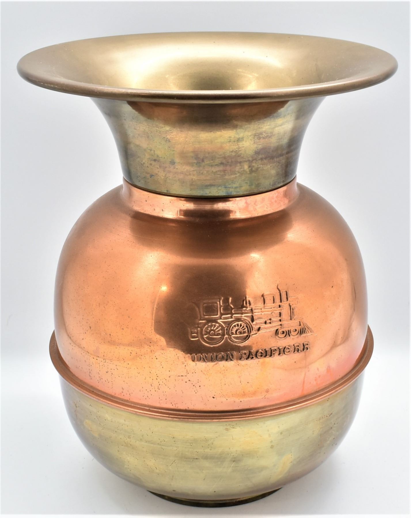 Copper and Brass Union Pacific Railroad Spittoon, measures 10'' x 11.25''