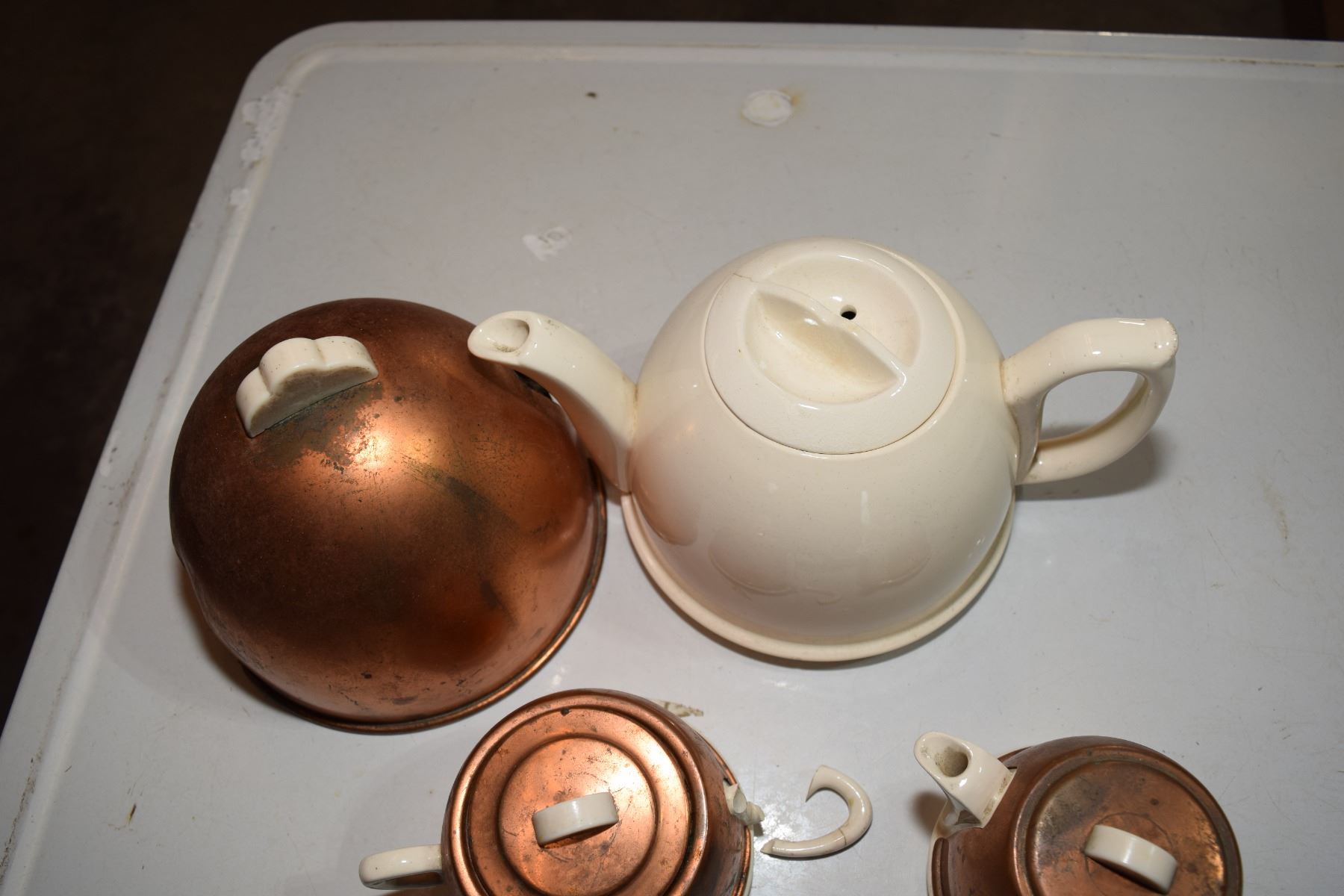 Copper and Ceramic Tea Set - Cream Sugar and Tea Pot - Some Damage
