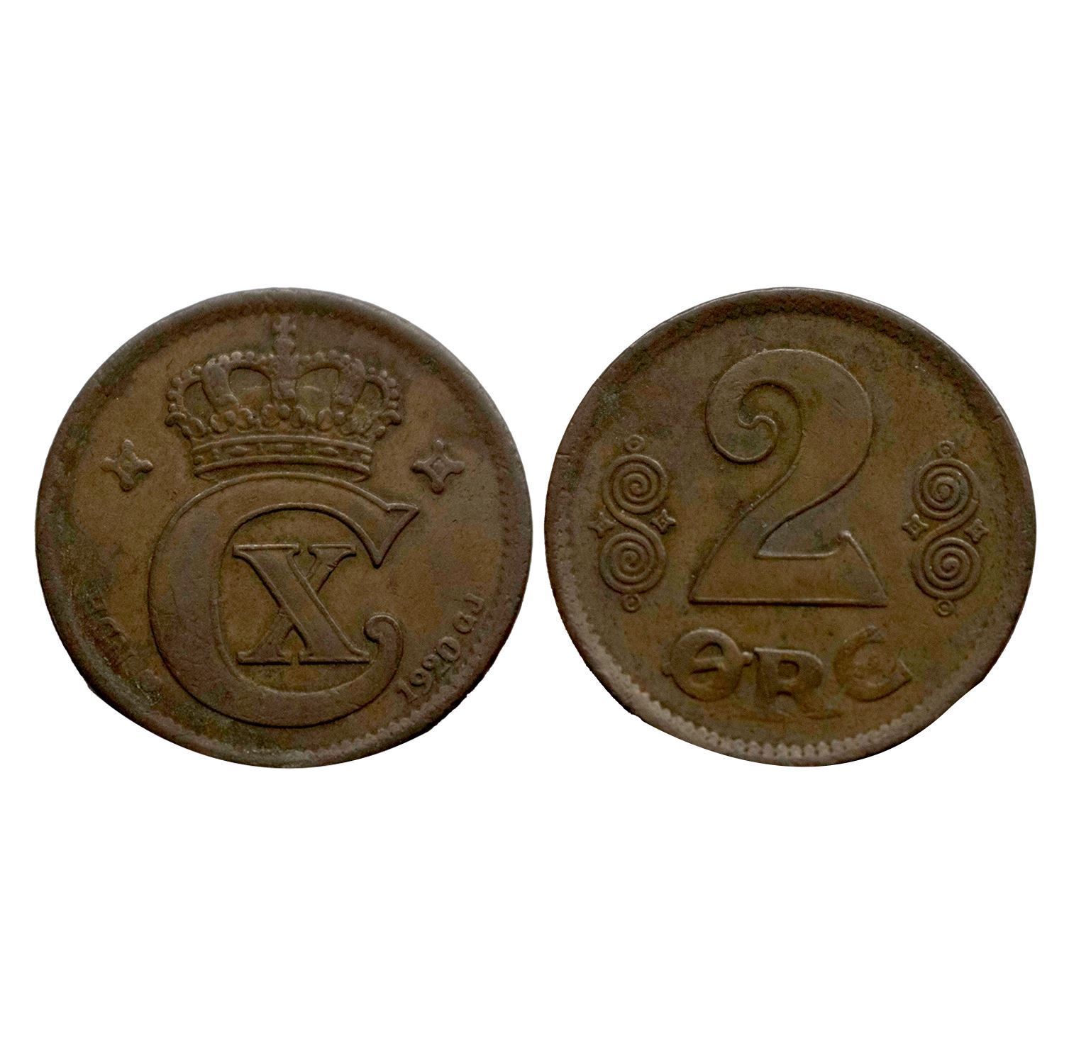 Copper coin of Denmark, Obverse : Crowned CX monogram, date and mintmark below , Reverse : Value, two old Norse scrolls on sides, 3.95g, Extremly fine.