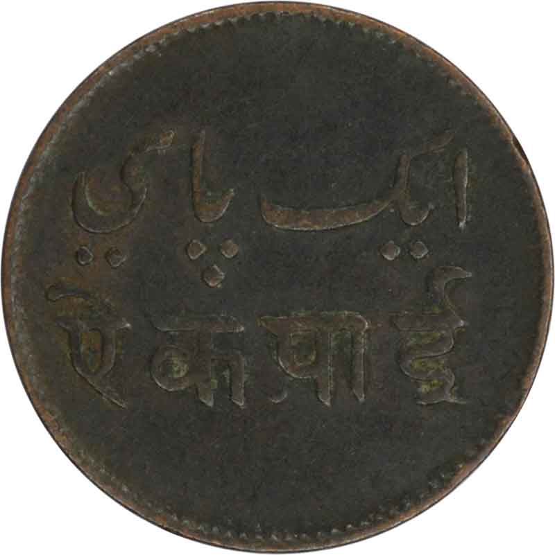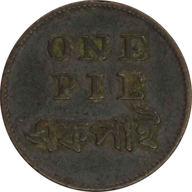 Bengal Presidency, Calcutta, Copper One Pie, in the name of Shah Alam II, Obv: value in english bengali, Rev: value in bengali, persian hindi, 2.1g, 16.34mm, (KM# 58), about very fine.