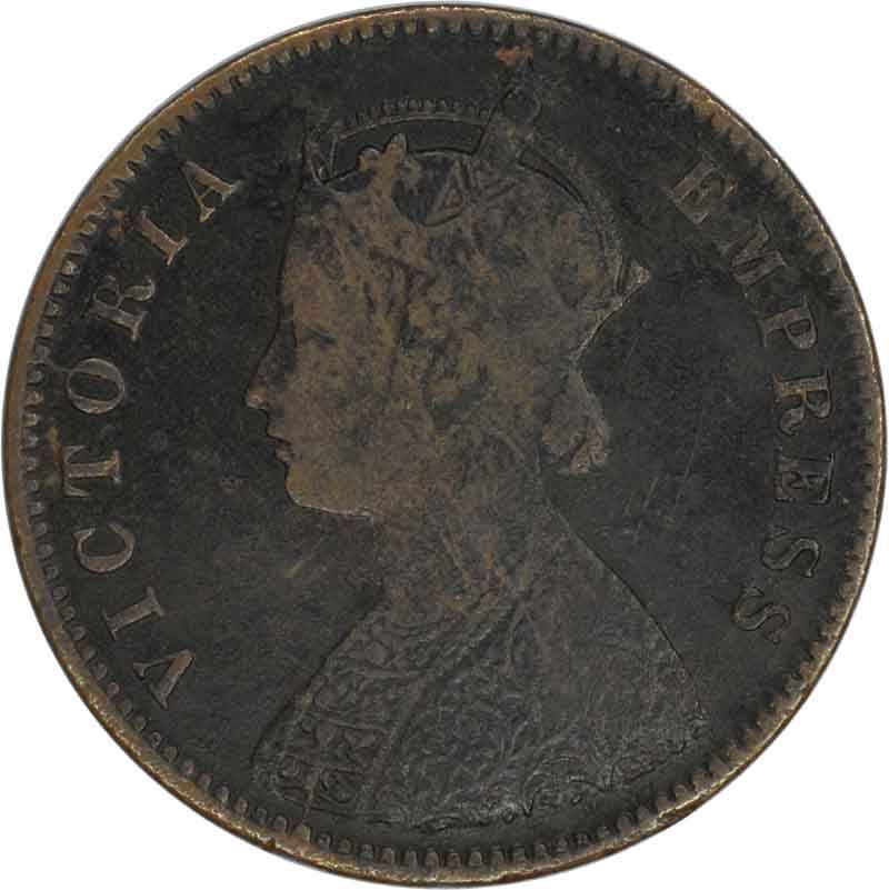 Copper one quarter anna of Dewas state of Narayan rao with the name of Victoria empress.