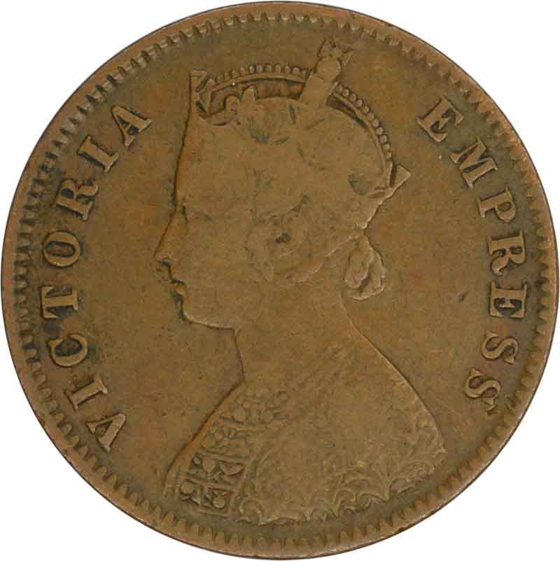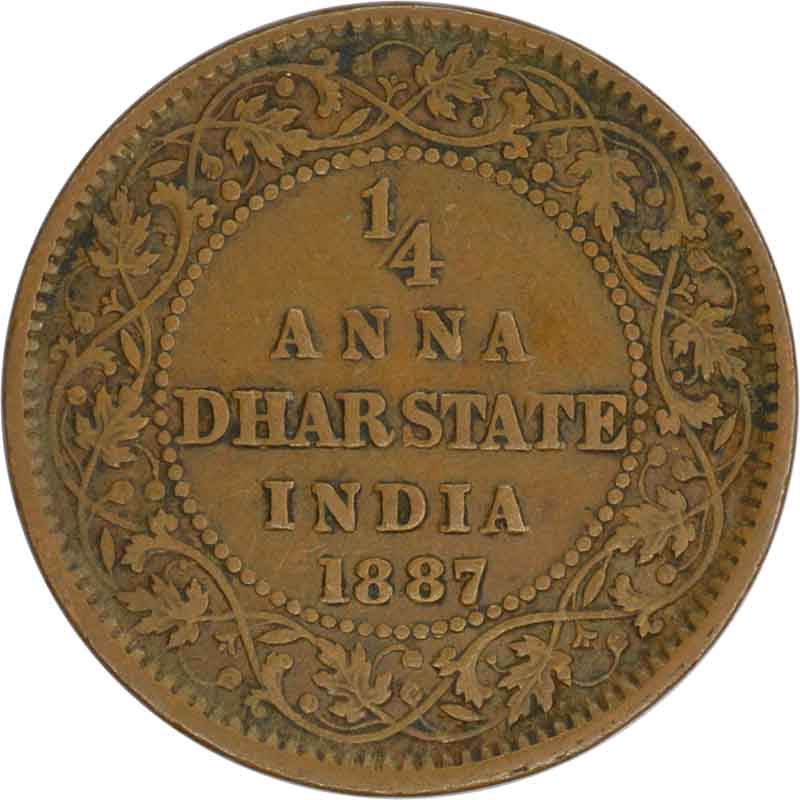 Copper one quarter anna of Dhar state of Anand Rao III with the name of Victoria Empress.