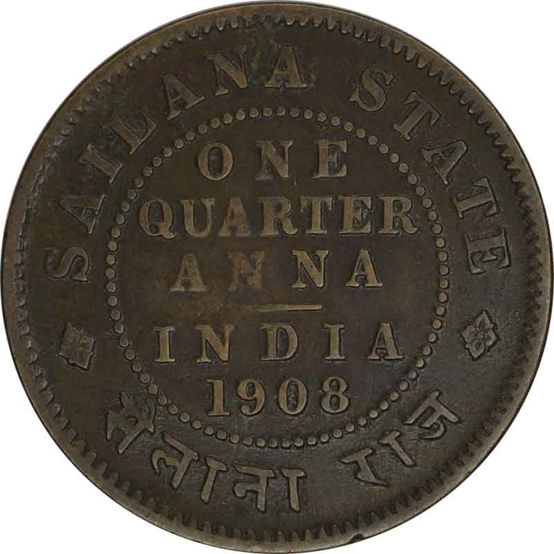 Copper one quarter anna of Sailana state of Jaswant singh with the name of King Edward VII.
