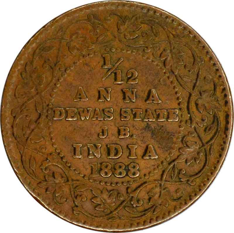 Copper one twelfth anna of Dewas state of narayan Rao with the name of Victoria Empress.