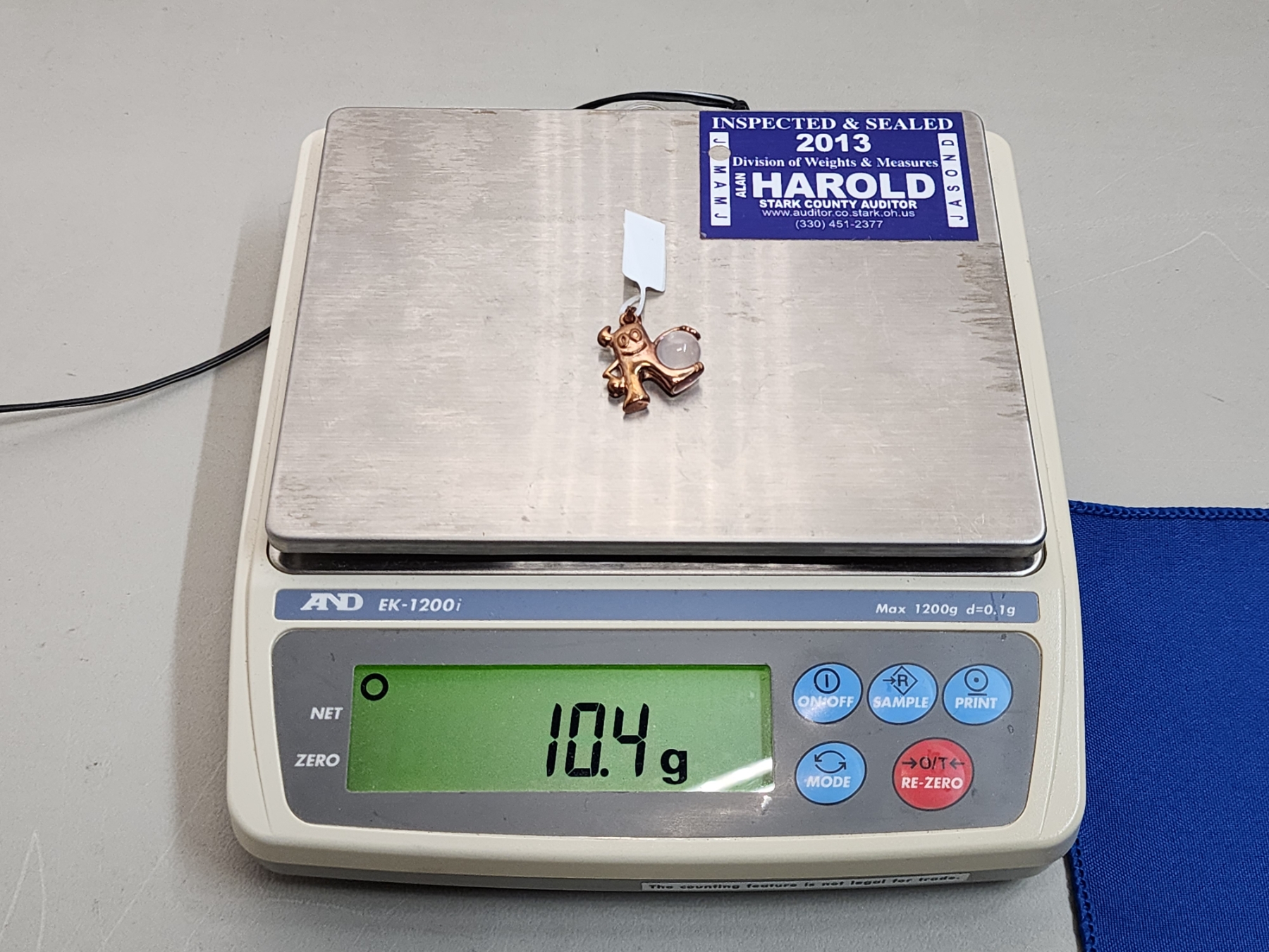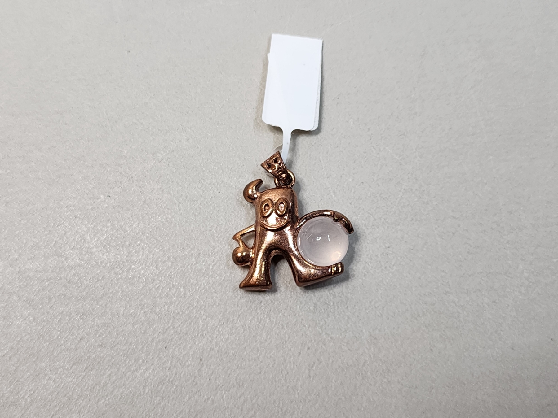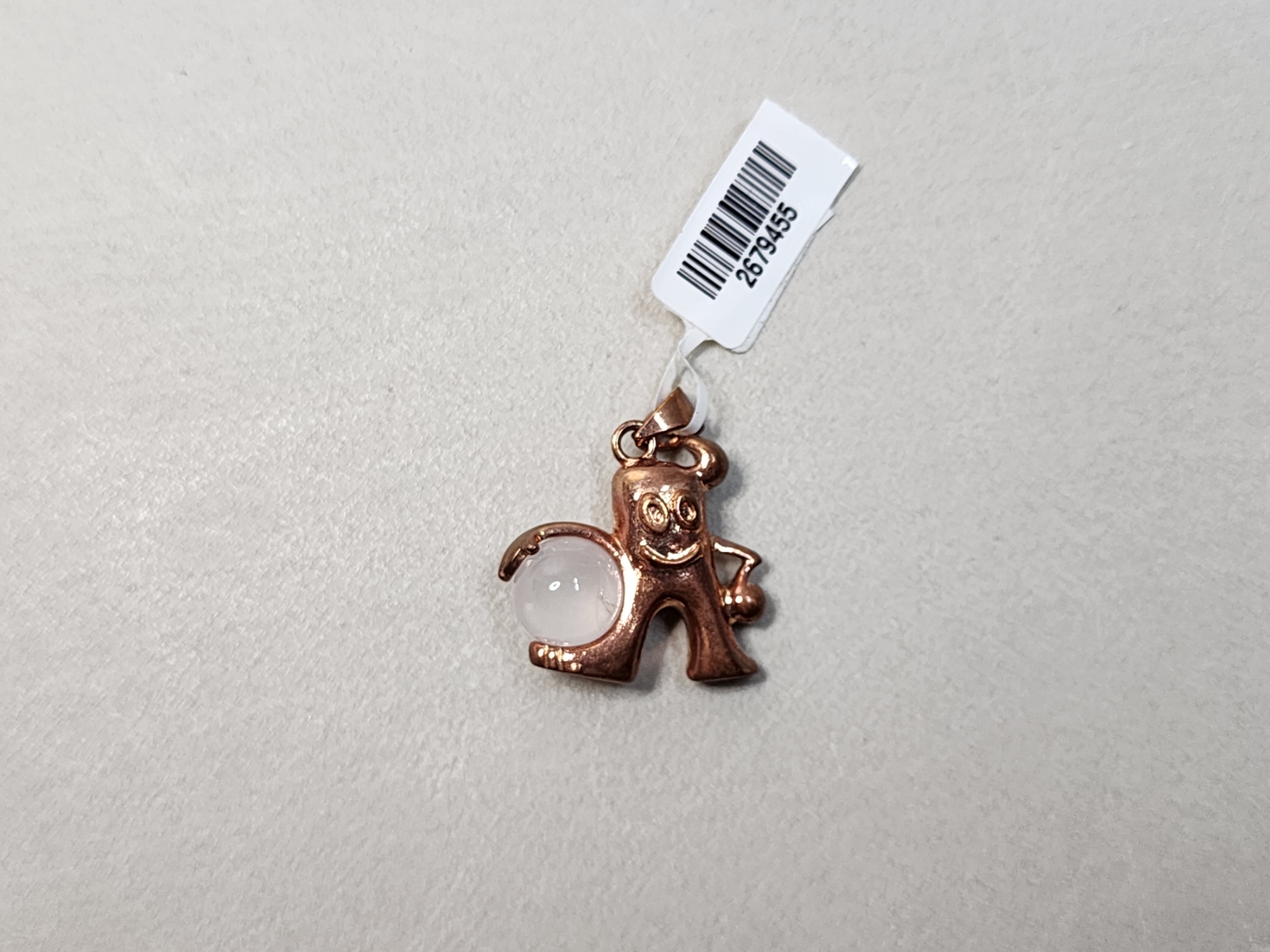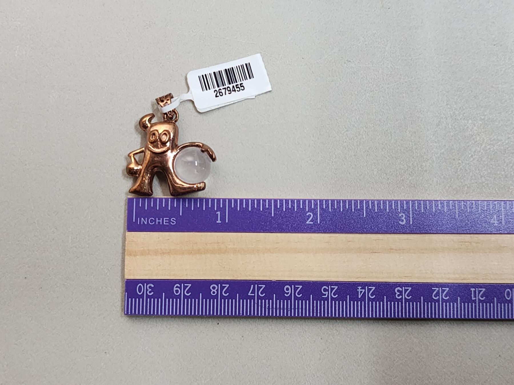 Copper-tone Metal Charm / Pendant with Light Pink Round Stone