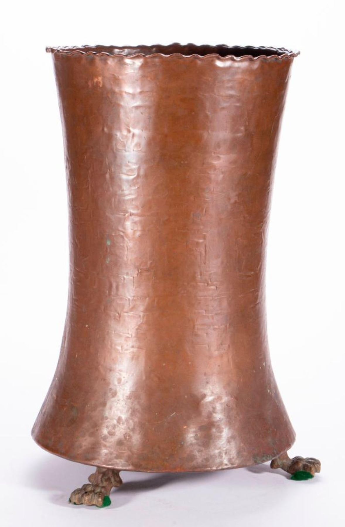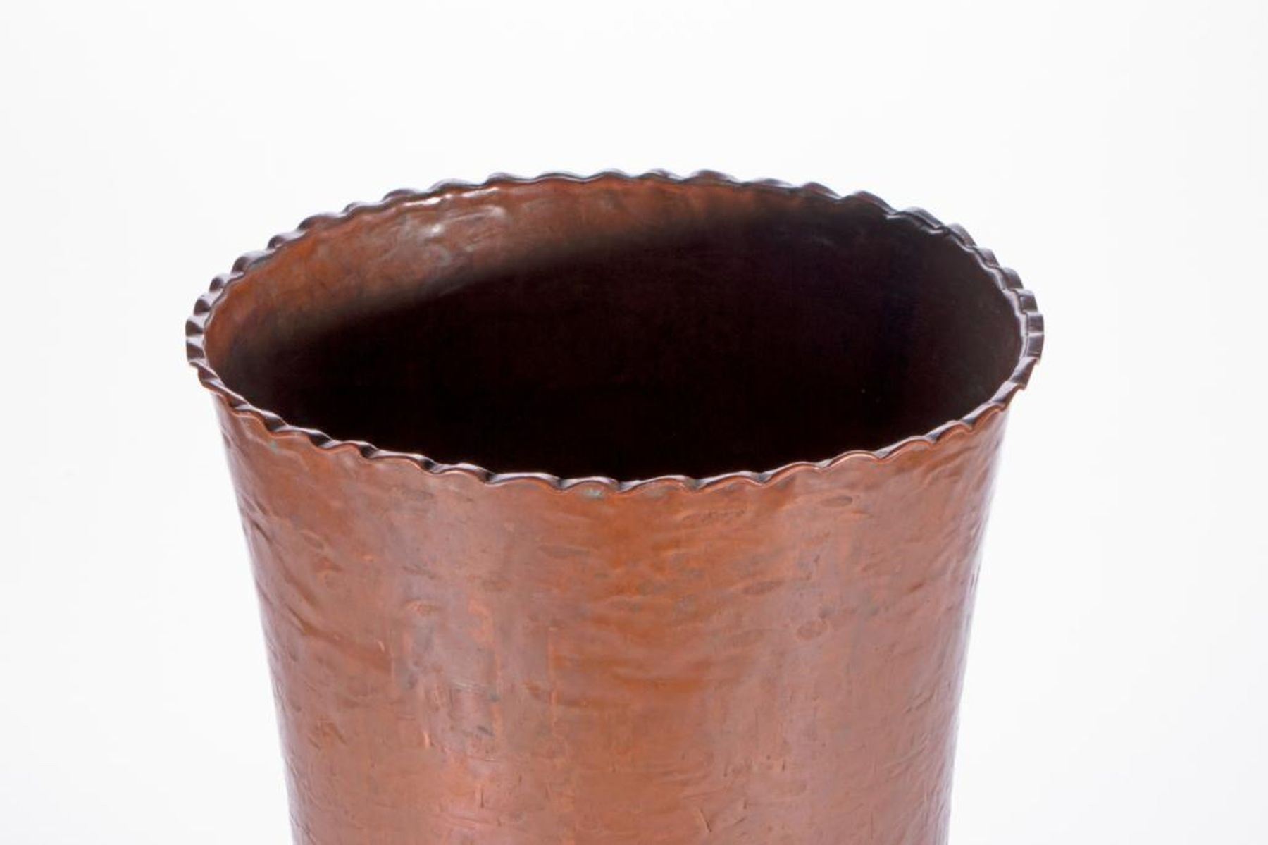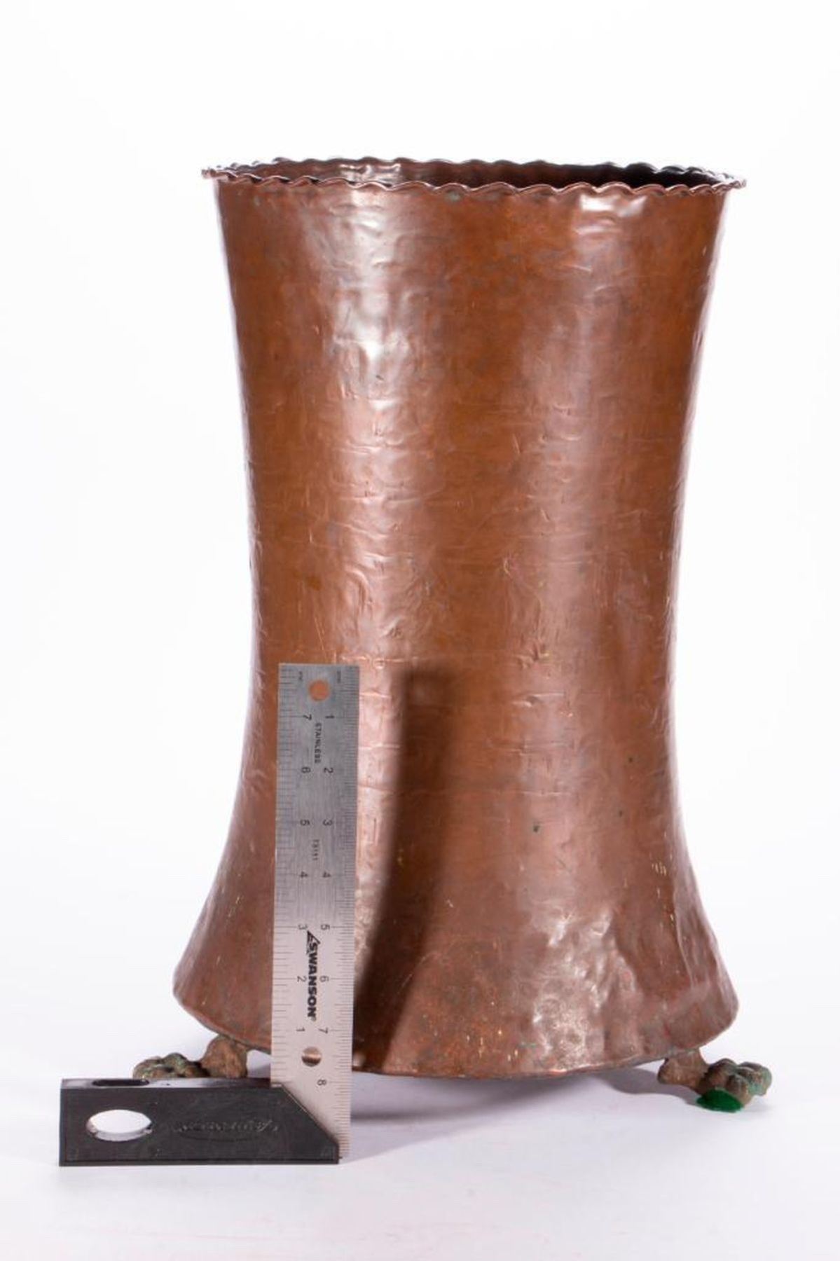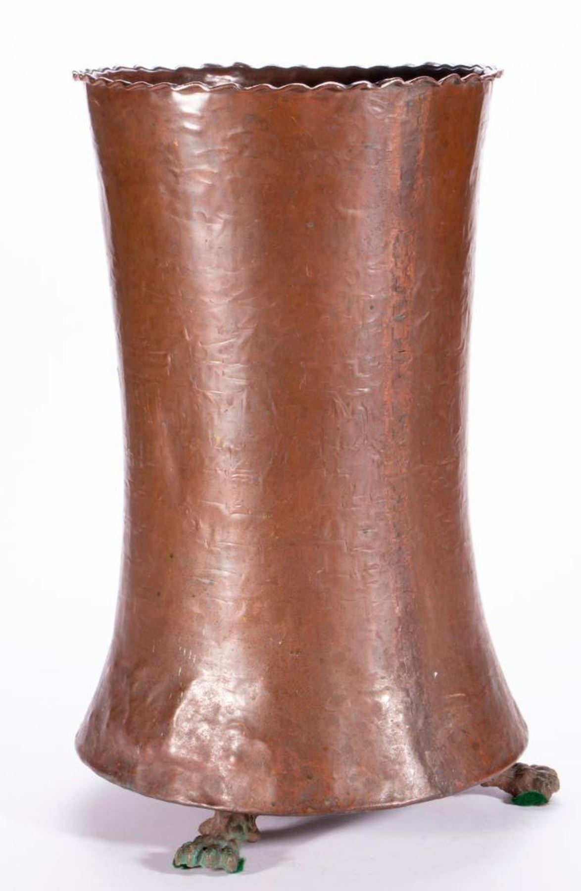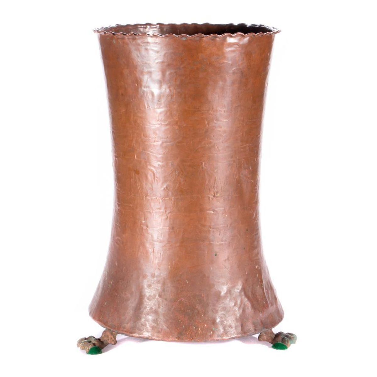 A late 19th/early 20th century Arts and Crafts style hand worked copper umbrella stand. 19 inches high x 12 diameter. Items are sold as is. Please inquire about condition if not otherwise stated.