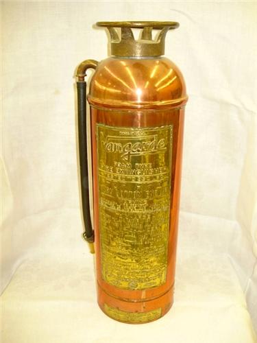 Copper with Brass Plate Fire Extinguisher, Made in USA, VANGARDE, foam type fire extinguisher, measures 24" h