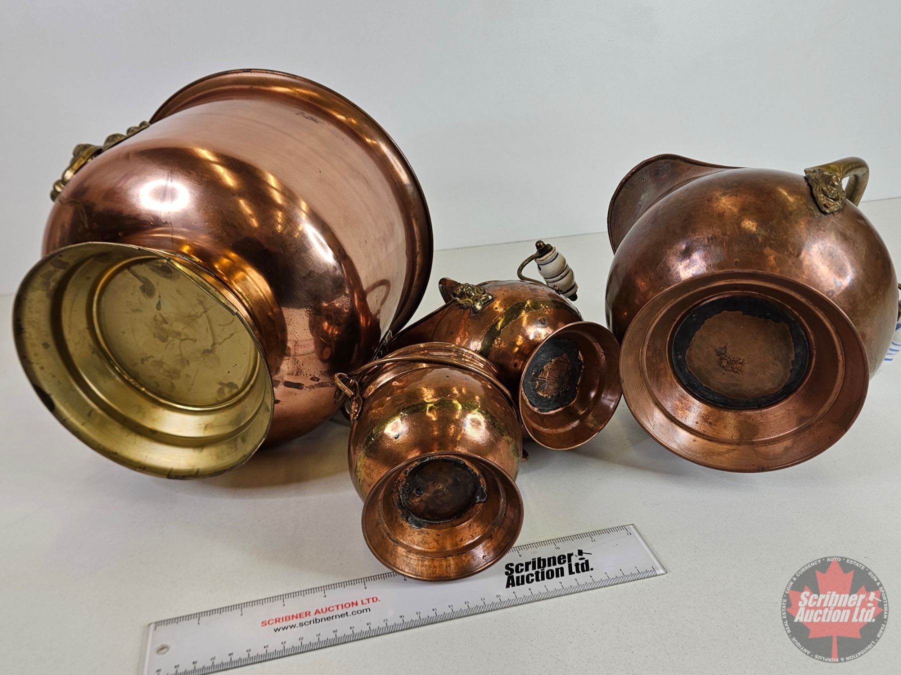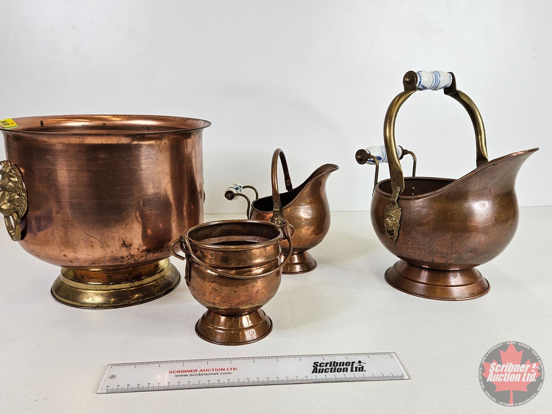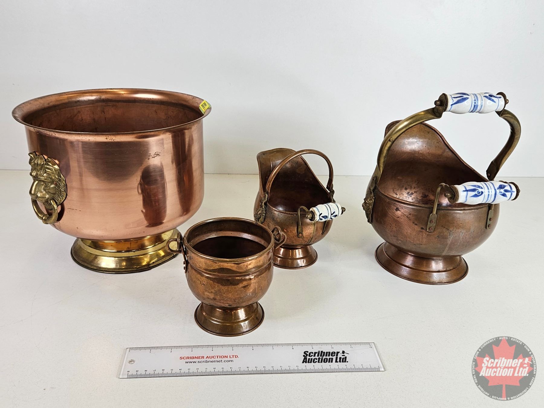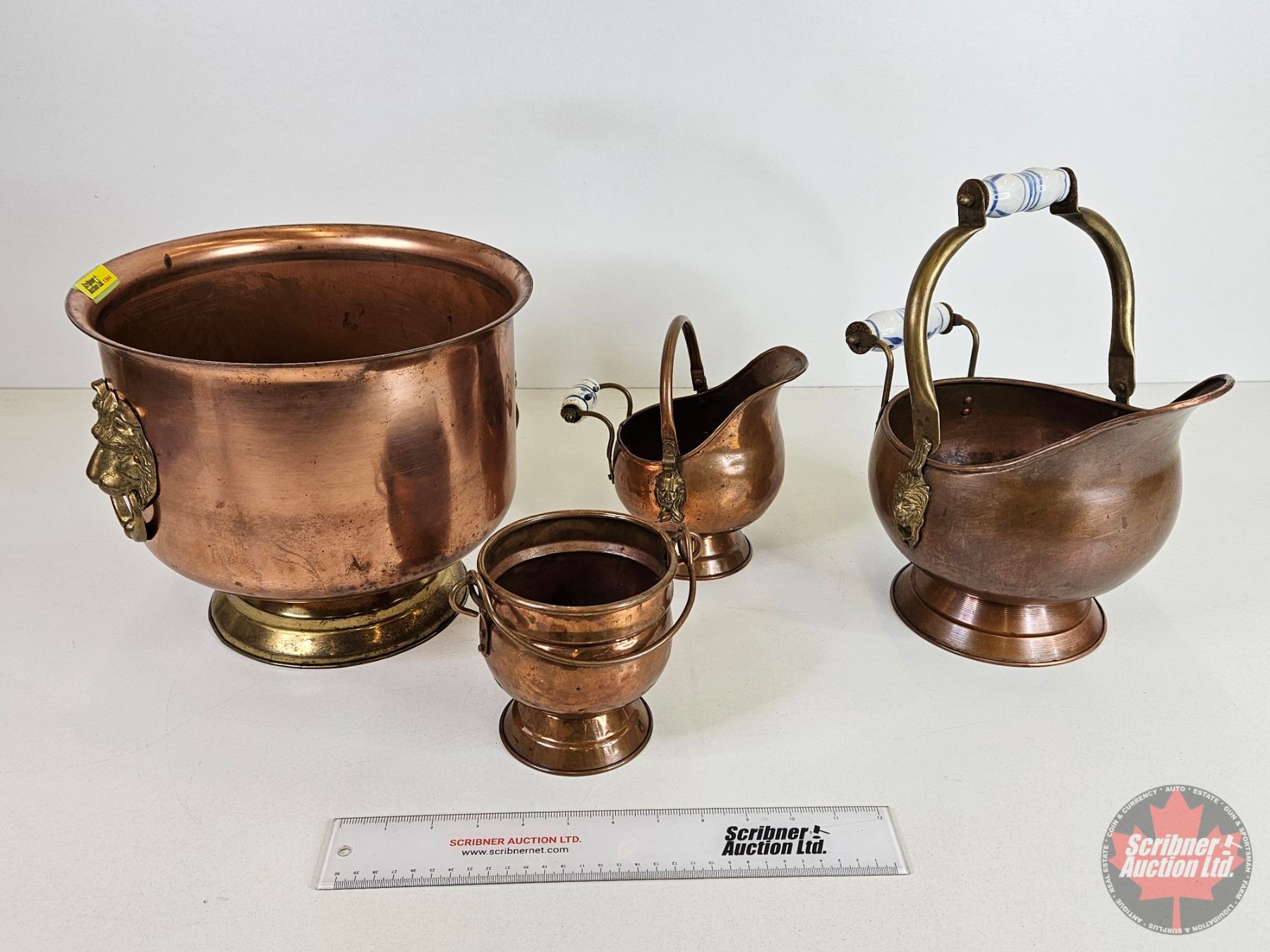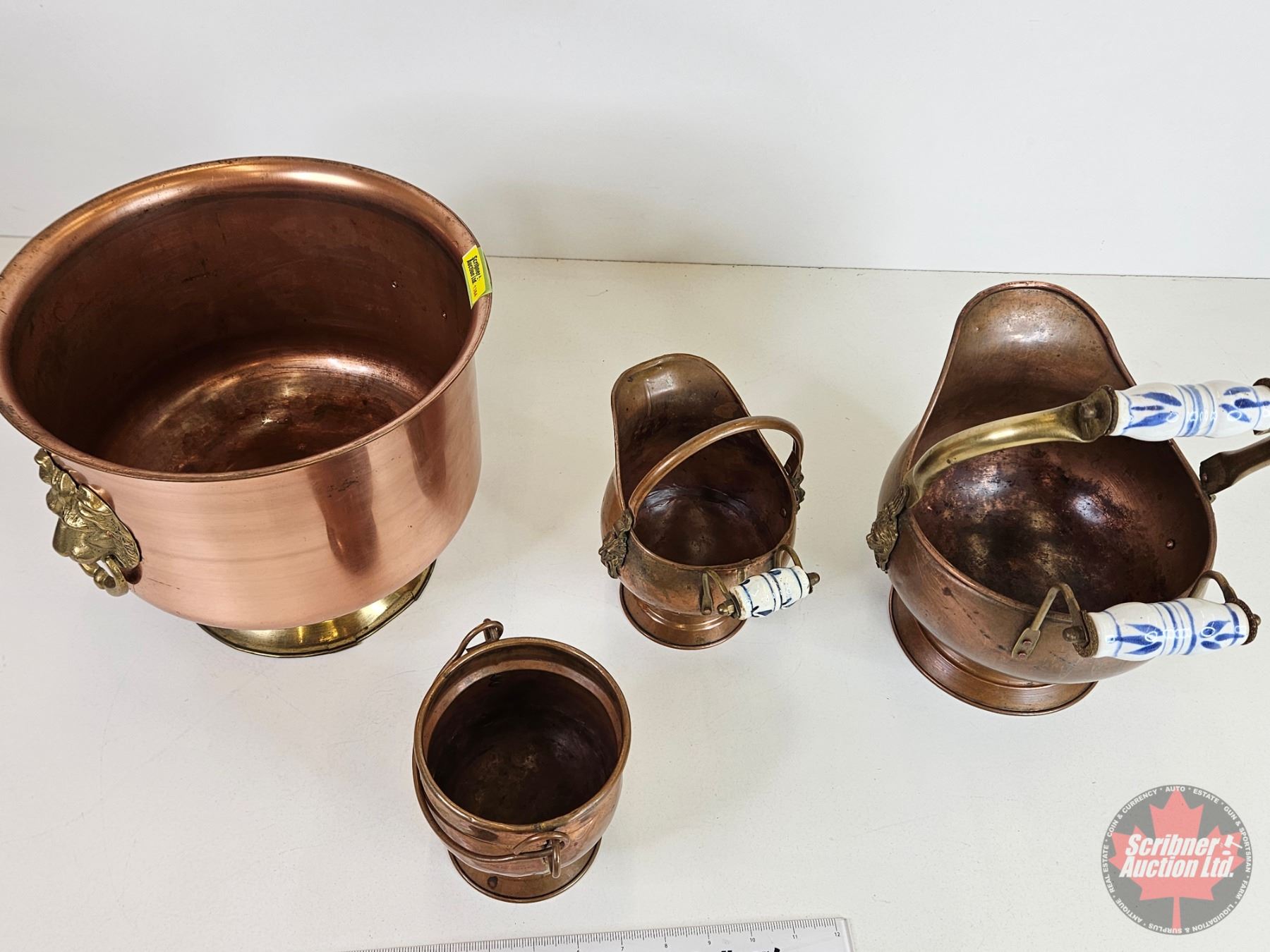 Coppercraft Grouping (4) : Skuttles (2), Kindling Bucket & Pot